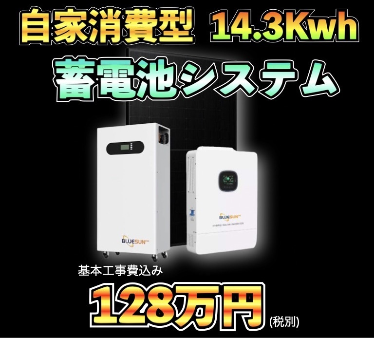 128万円・卒FIT・自家消費型 蓄電池システム 大容量14.3kWh 基本工事費込み 節電・停電対策 安心の保証付き  安心のハイブリッド蓄電池