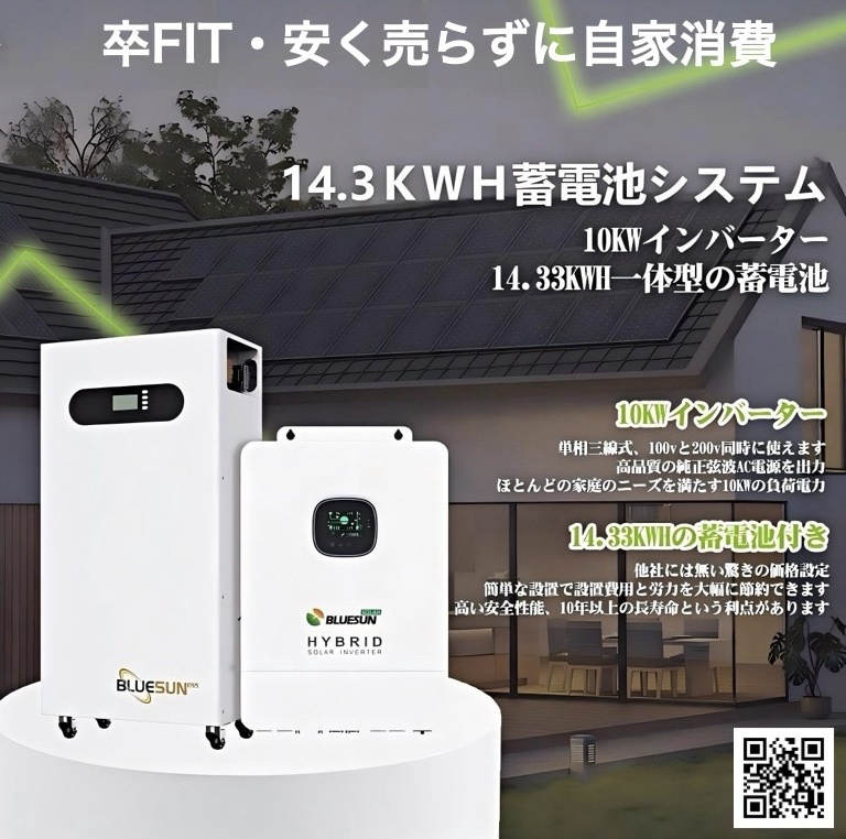 卒FIT・買取終了の方へ 128万円 大容量蓄電池14.3Kwh 太陽光自家消費蓄電池システム 節電・停電対策 安心保障 安心の3000サイクル