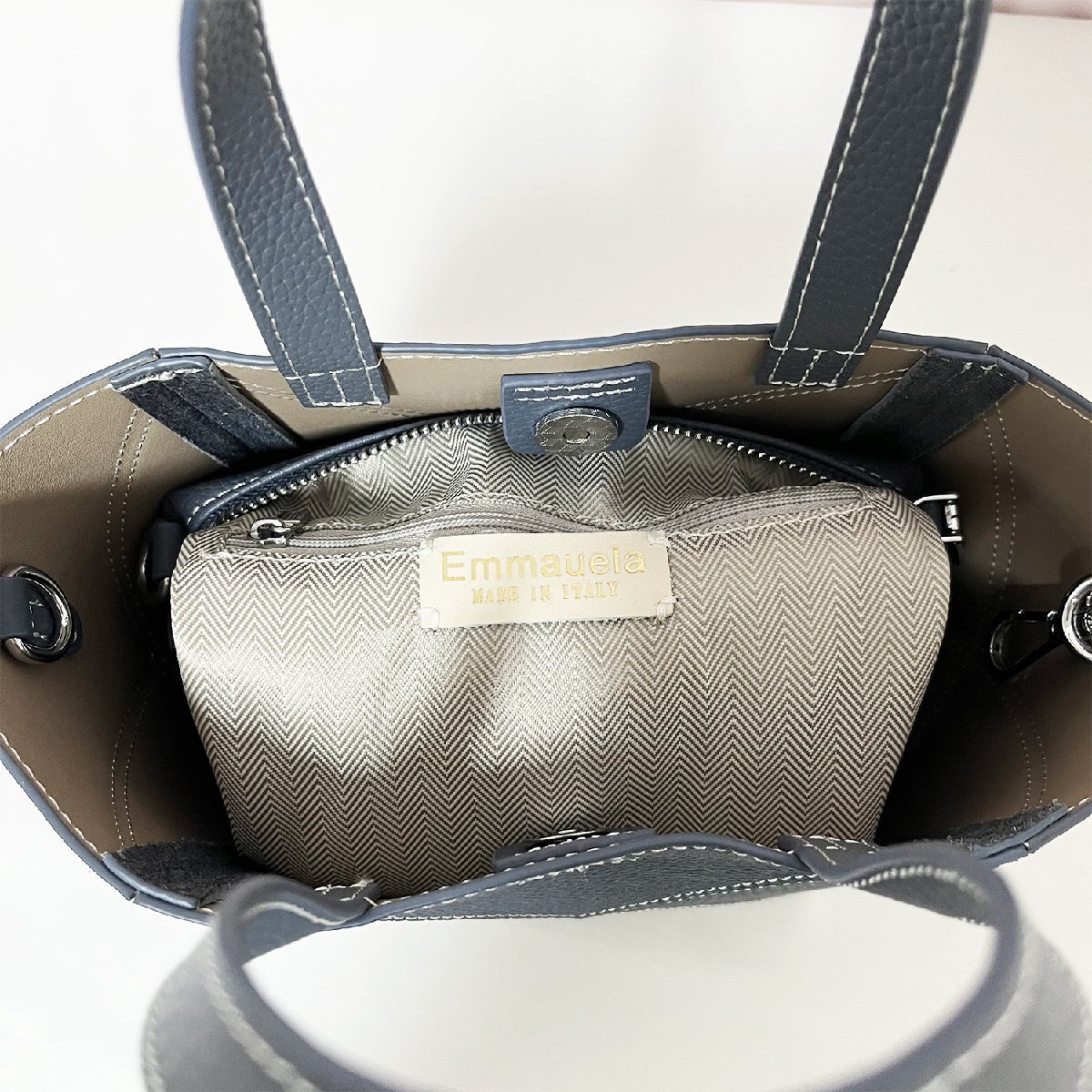 上品・ハンドバッグ 定価12万◆Emmauela・イタリア・ミラノ発◆高級牛革 大容量 2WAY ポーチ付き バケツバッグ デイリー 通勤 レディース