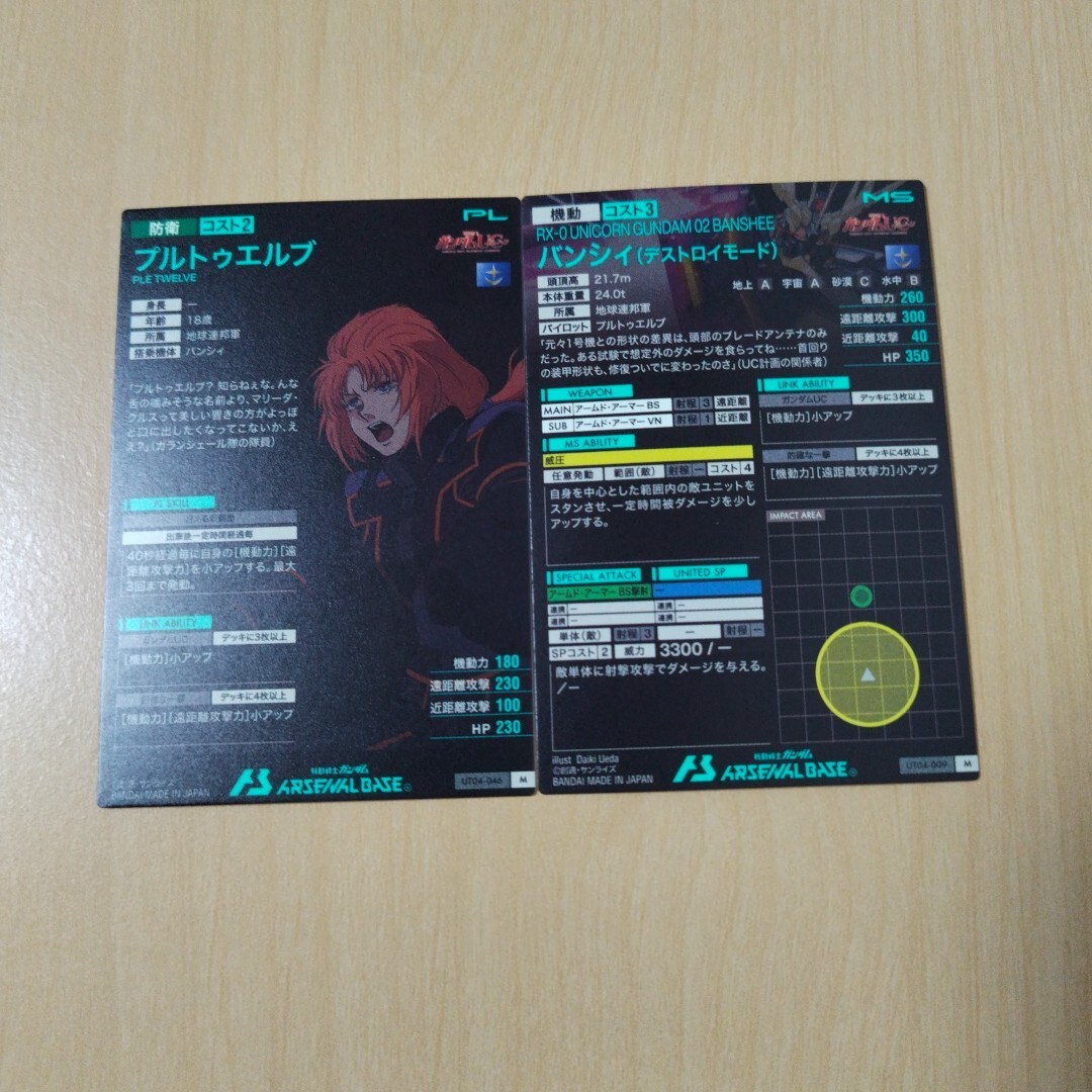 ガンダムアーセナルベース、Mレア、バンシィ(デストロイモード)& プルトゥエルブの出品となります。未使用品です。排出後、スリーブに入れて保管していますが初期キズなど気になさる方はご遠慮ください。配送料金は梱包代込みで全国一律、120円とさせていただきます。他の出品との同梱は対応いたします。ノークレム、ノーリターンにてお願いいたします。