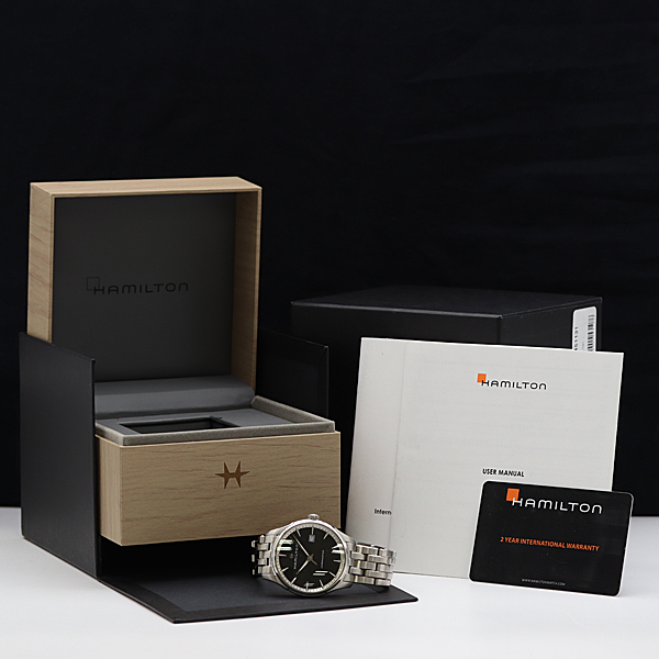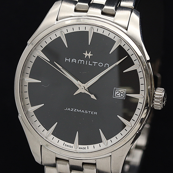 1円 保/箱付 稼働 ハミルトン ジャズマスター H324510 QZ ブラック文字盤 メンズ腕時計 0277200 9BGT SMZ