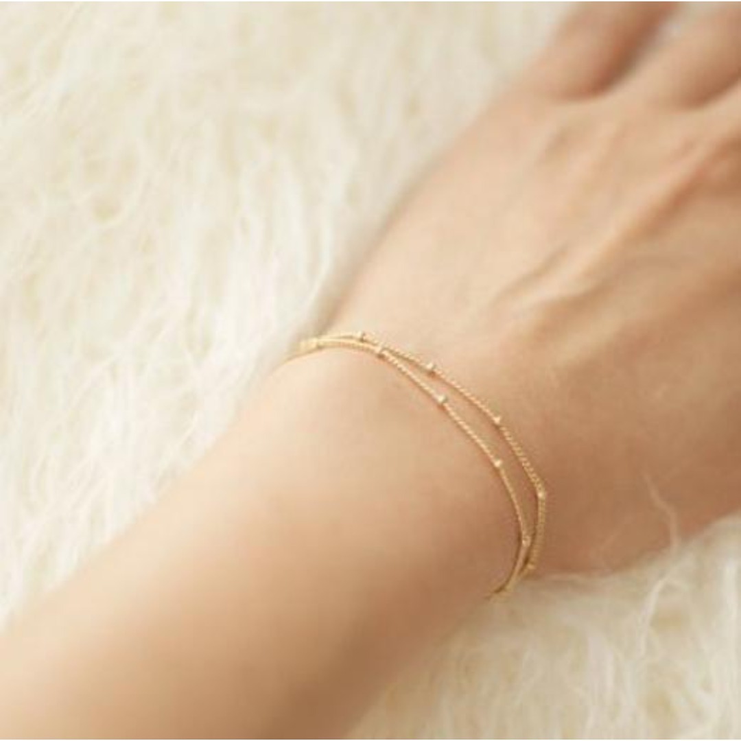 デイリーから特別な日まで大活躍の万能アクセサリー!ゴールドの2連デザインで、アジャスター付きのブレスレットです。