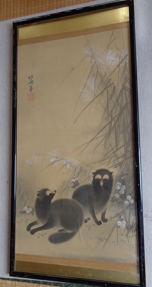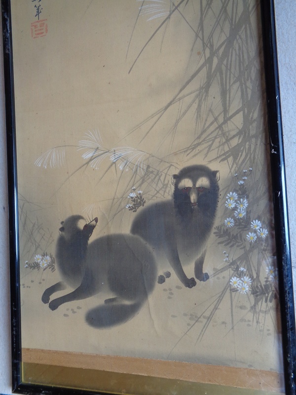 【模写】葛飾北斎  双狸図  絹本  手描き  古蔵より発見