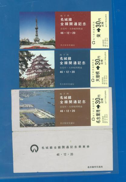 記念乗車券 名古屋地下鉄名城線開通記念 3種です。