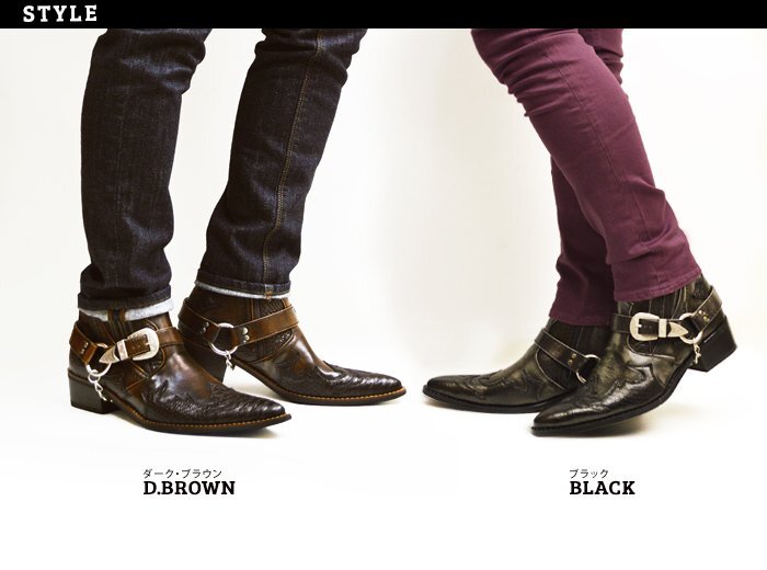 新品■28cm メンズ ウエスタンブーツ 脚長 ヒールアップ サイドゴア サイドジッパー ヘビ柄 パイソン バックル リングブーツ 男 靴