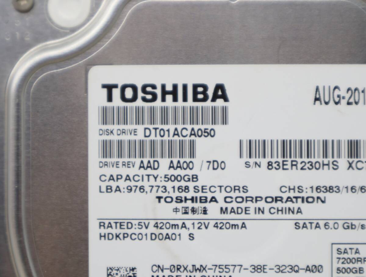 ∨ 500GB|内蔵型 3.5インチ HDD ハードディスク SATA|TOSHIBA 東芝 DT01ACA050 |フォーマット済 ■O0720