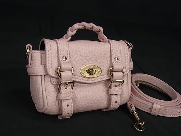 1円 ■極美品■ MULBERRY マルベリー マイクロアレクサ レザー クロスボディ 2WAY ハンドバッグ ショルダー ミニバッグ ピンク系 FJ8203