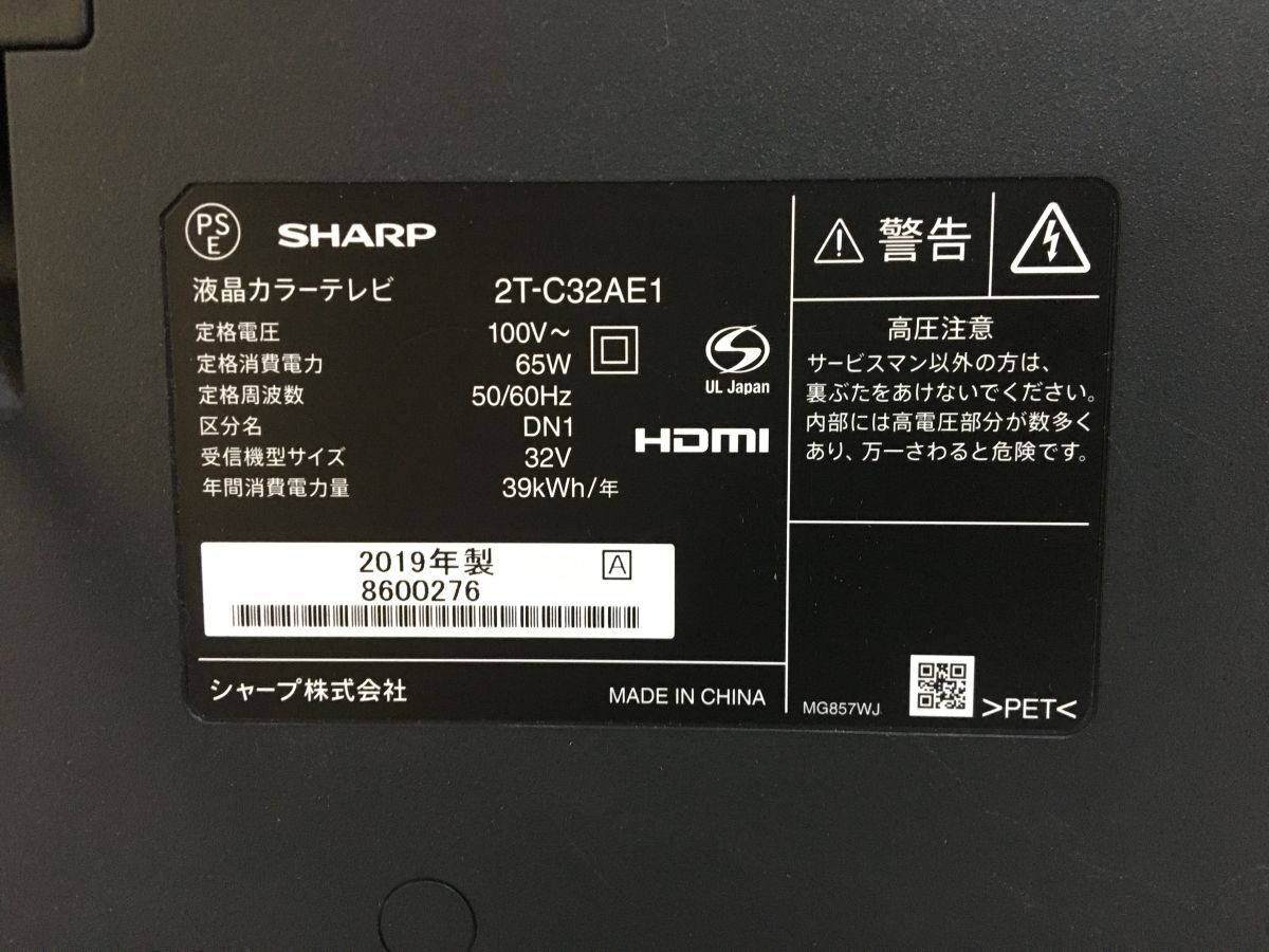 管1988 【動作確認済】SHARP AQUOS 液晶テレビ 2T-C32AE1 2019年製 32V型 シャープ アクオス リモコン付 テレビ 中古品
