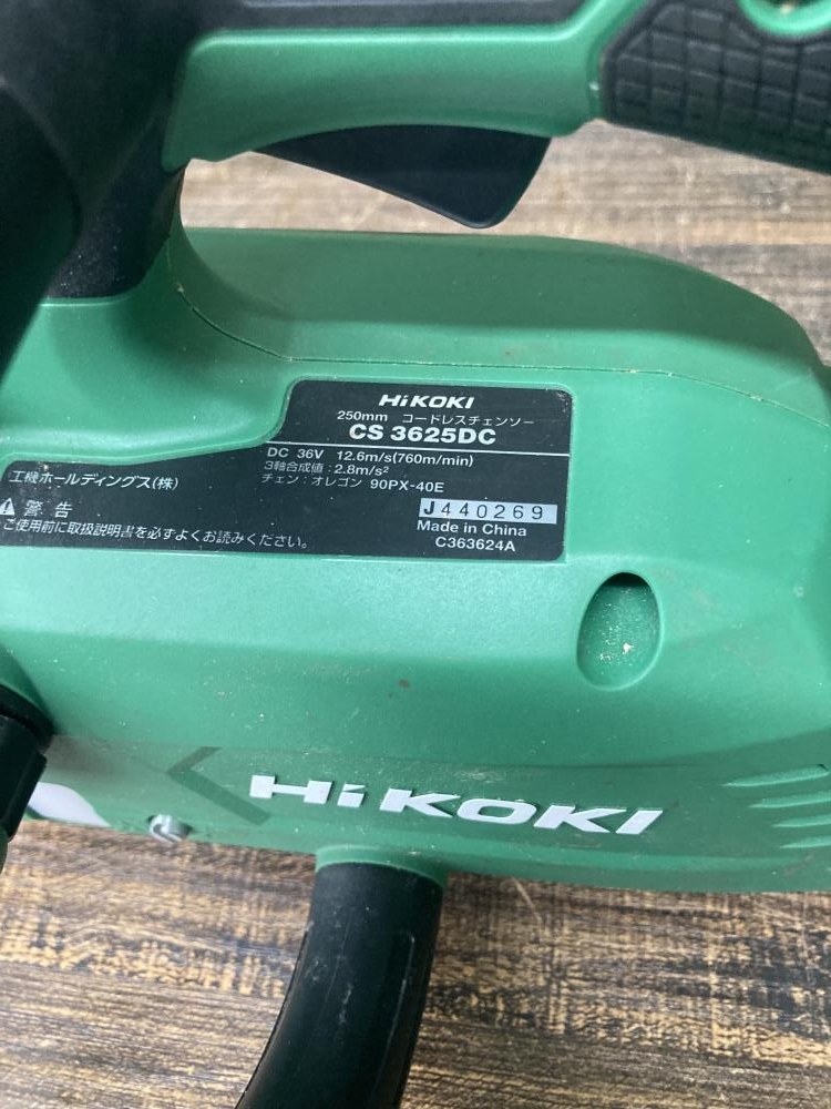 ハイコーキ HiKOKI ■商品名 250mmコードレスチェーンソー ■型番 CS3625DC |