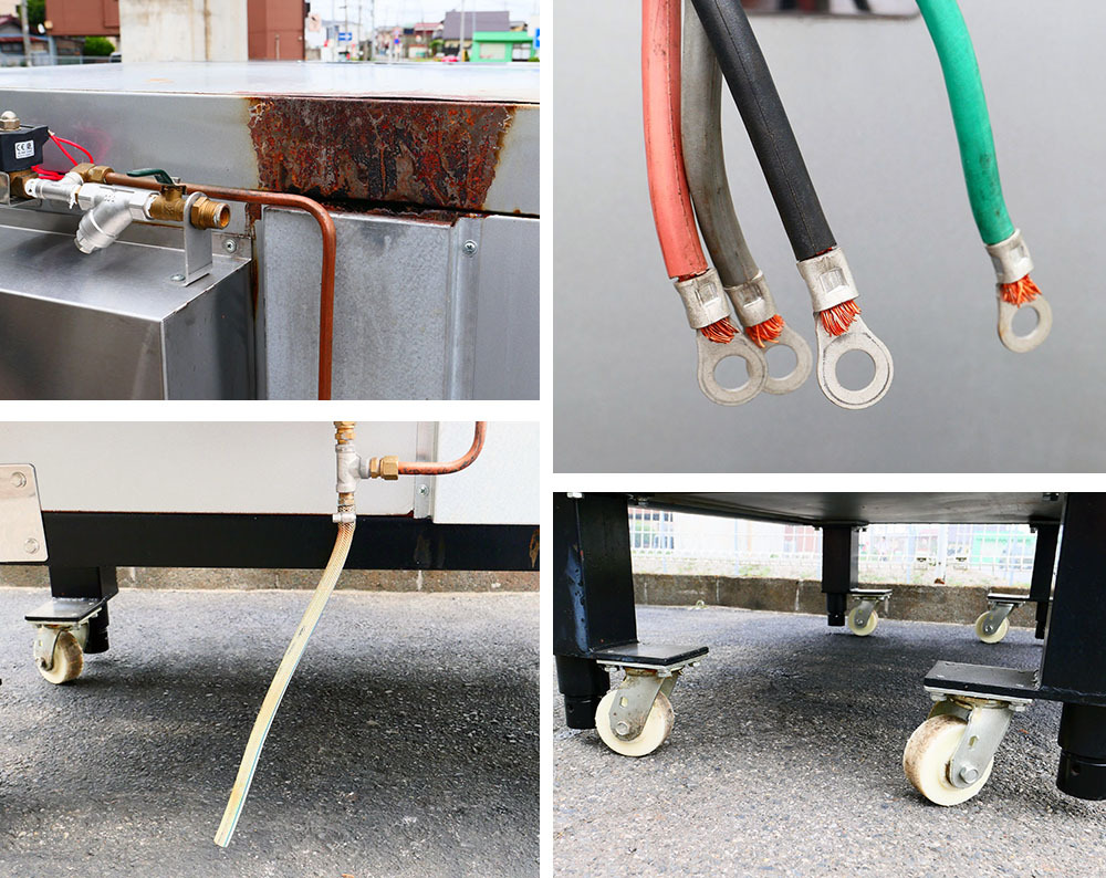 | スペック | 庫内寸法:幅900×奥行680×高さ230mm 設定温度:0~300度 庫内灯:有り 消費電力:19.9kW) (スチーム未使用時:14.6kW) 電流:60A (スチーム未使用時:42A ※スチーム使用時は軟水器を取り付けて下さい。 ・給水および排水の処理が必要となります。 ※詳細な仕様につきましては、メーカーへお問い合わせください。 |