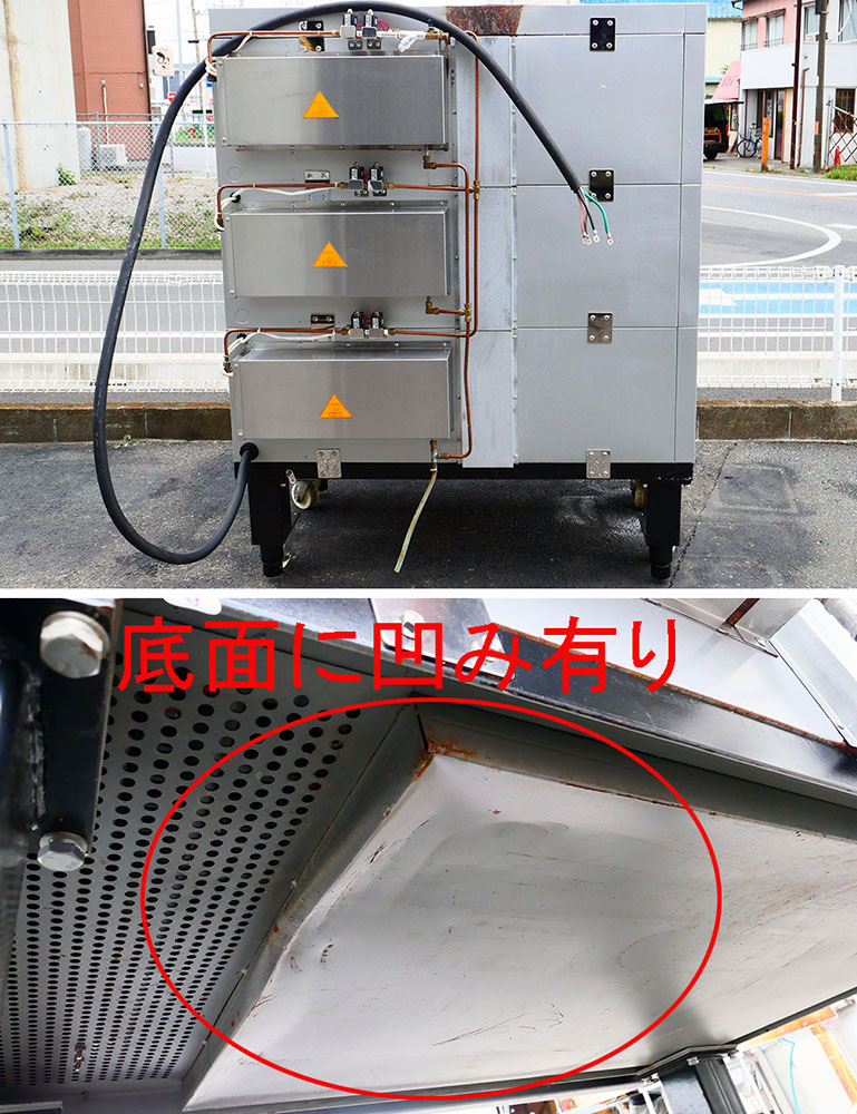 2017年製 動作確認済み。 300度設定で1時間加熱しました。 各段それぞれ200度以上にはなりましたが、 表示温度にムラがあります。 庫内灯点灯します。 可能な限り丁寧にクリーニングを行っております。 アジャスター調整出来ます。 ・キャスター付き。 庫内に落としきれない汚れ有ります。 底面に凹み有ります。 中古品のため、使用に伴う小傷や変形・変色がございます。 状態については、掲載写真をご参照ください。 その他、見落としている点があるかもしれませんので、 ご不明な点や気になることがございましたら、 お気軽にお問い合わせください。 |