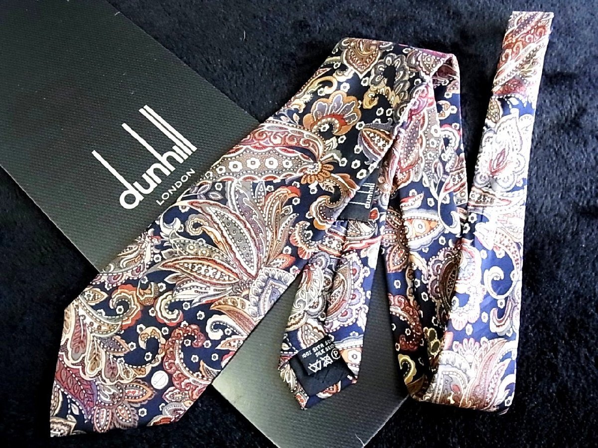 ★今週の特売★6933★高級ブランド【キャラ柄】★ダンヒル【ペイズリー 植物 dロゴ 柄】ネクタイ★