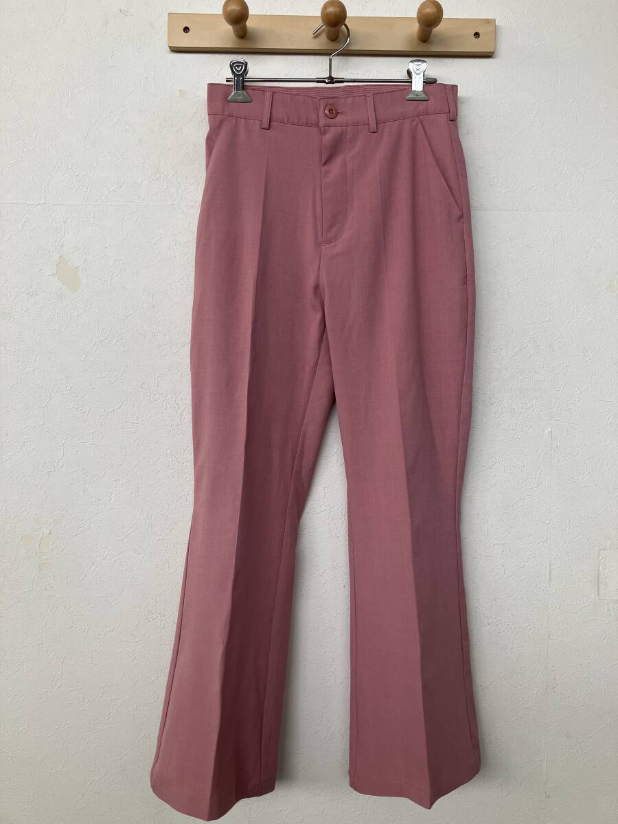 実寸:ウエスト幅約34㎝ 股上約28㎝ 股下約65cm ヒップ辺り幅約44㎝ 腿幅約26㎝ 裾幅約24㎝