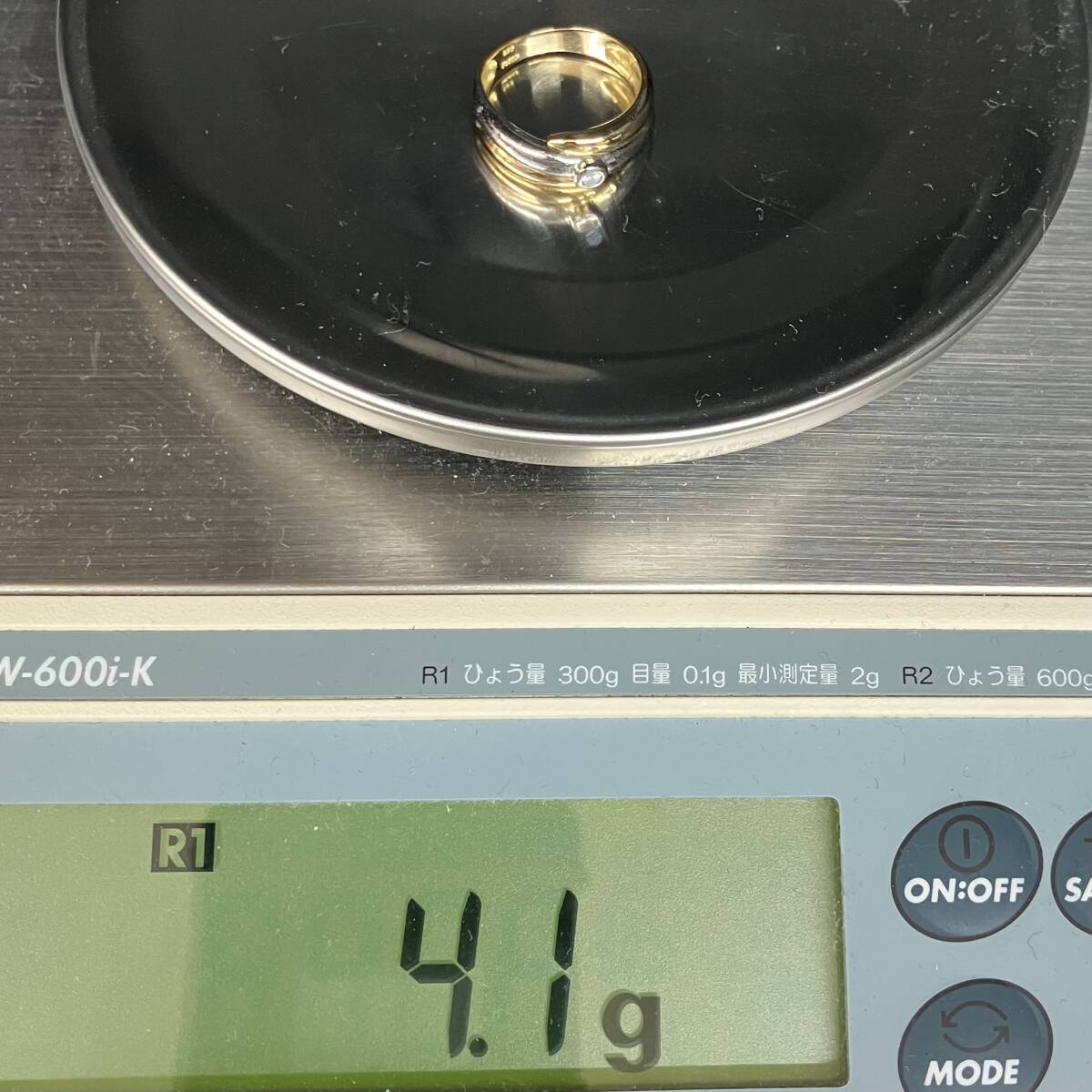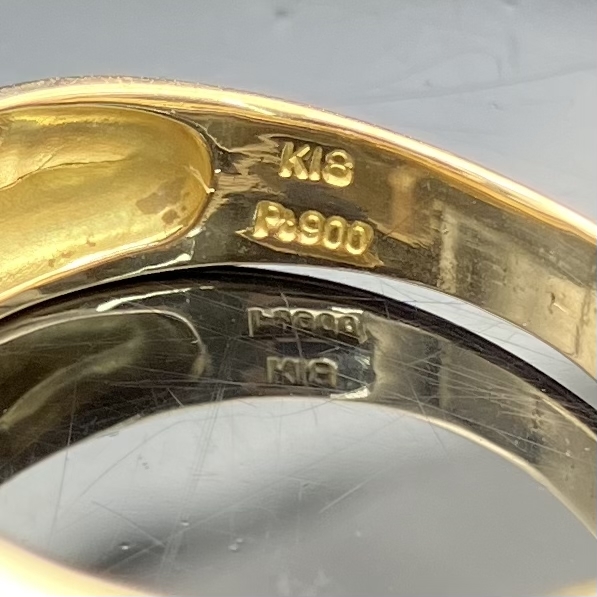 K18 Pt900 4.10g ゴールド プラチナ コンビ 指輪 11~12号 石種不明