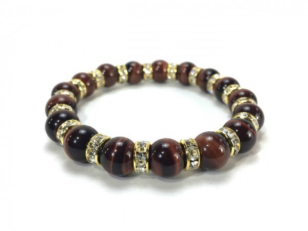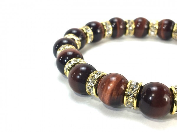 こちらは、10mm玉のレッドタイガーアイを使用したパワーストーンブレスレットです。間にはロンデルを挟み高級感あるブレスレットに仕上げています。石大きさは腕にも馴染みやすいように10mm玉を使用して、サイズは内径約18cmです。(サイズ調節も無料で承っています。サイズ変更の場合は落札後、取引ナビにてご一報くださいませ。) 数に限りがございますので気になる方はお早めにどうぞ。