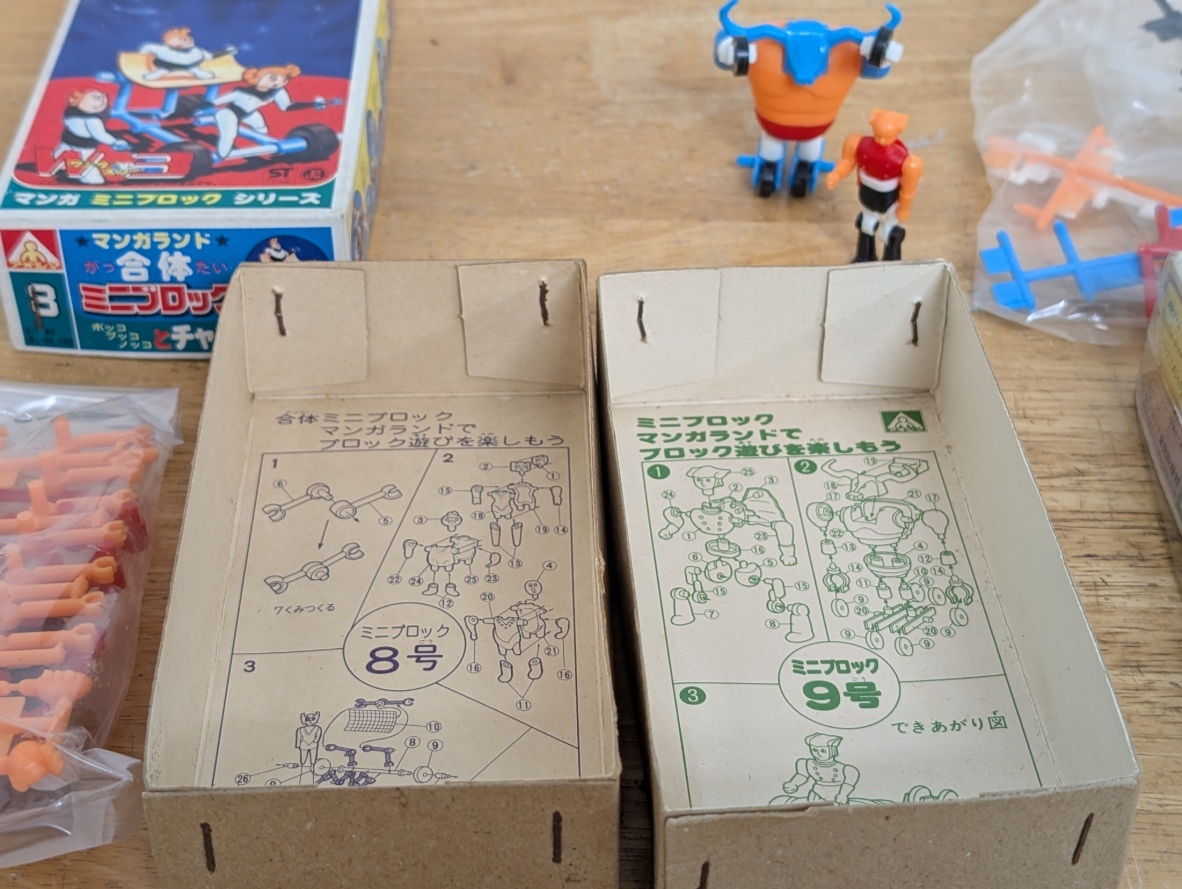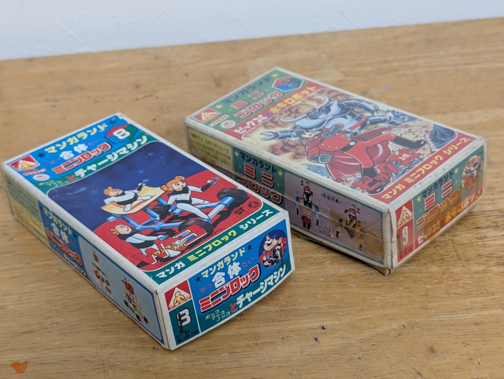 旧アオシマ(約8cm)マンガランド 合体ミニブロック ボッコ フッコ ノッコ とビッグXと水牛ロボット 組済み の2個セットです。箱は汚れ、スレ、キズがあります。袋部品未開封と組済みです。欠品があってもご容赦下さい。興味ある方いかがですか。