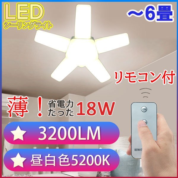 LEDLEDシーリングライト リモコン式 星型 省電力 18W ミニシーリング 3200LM 小型
