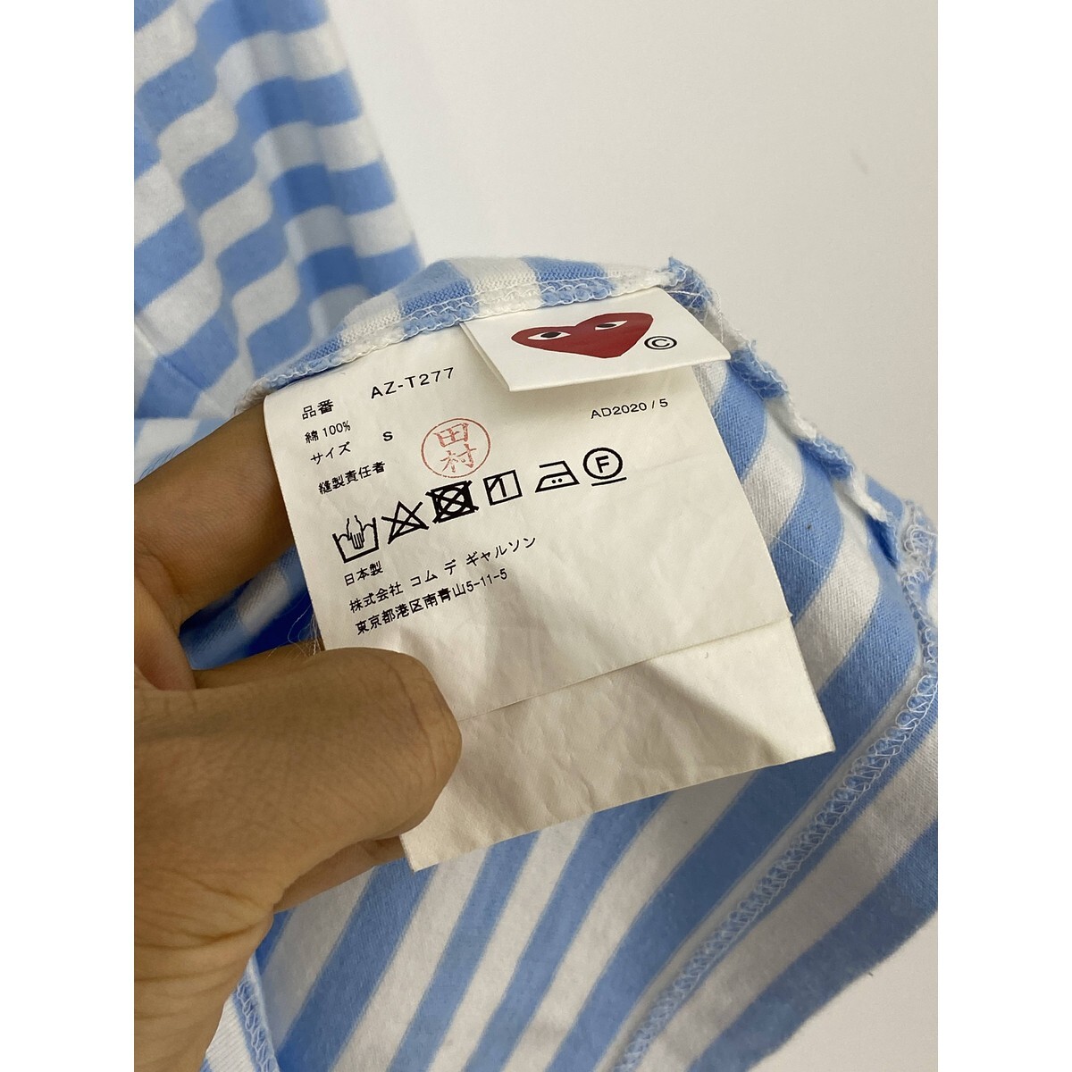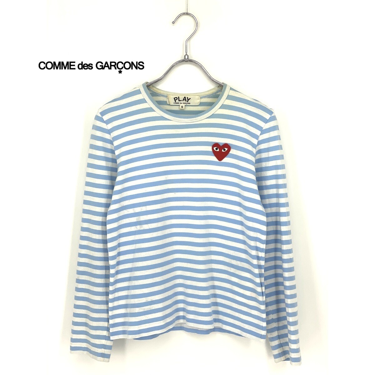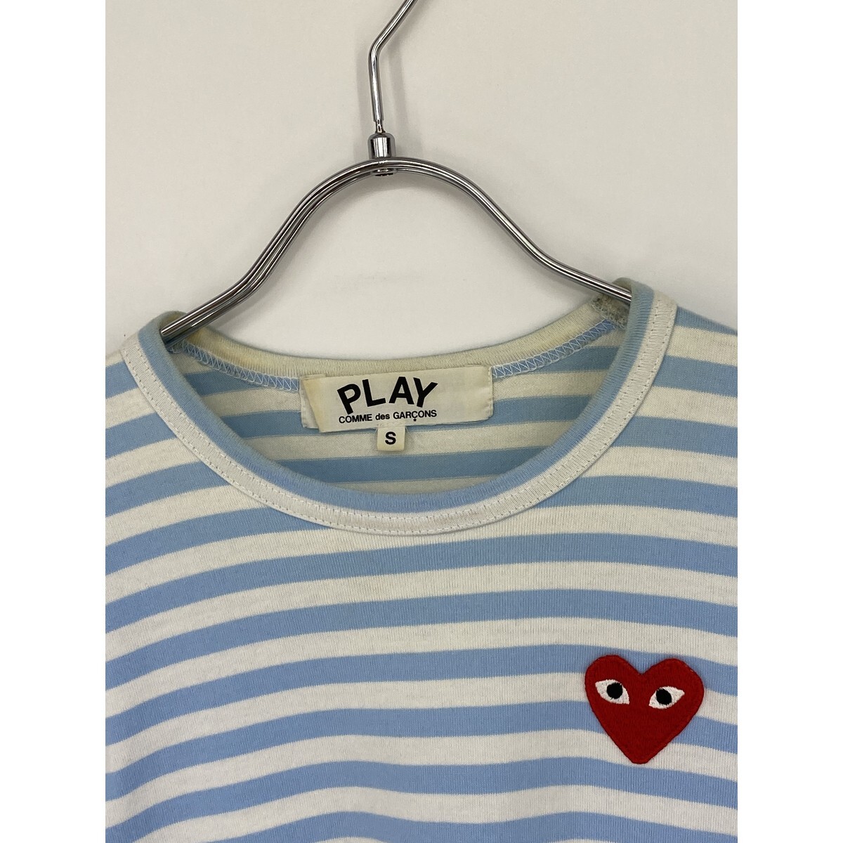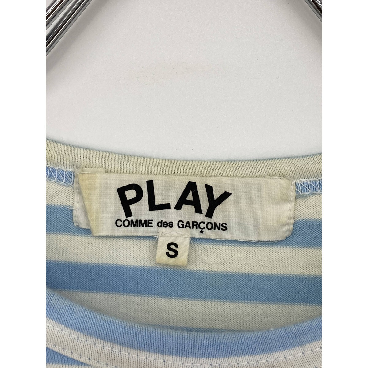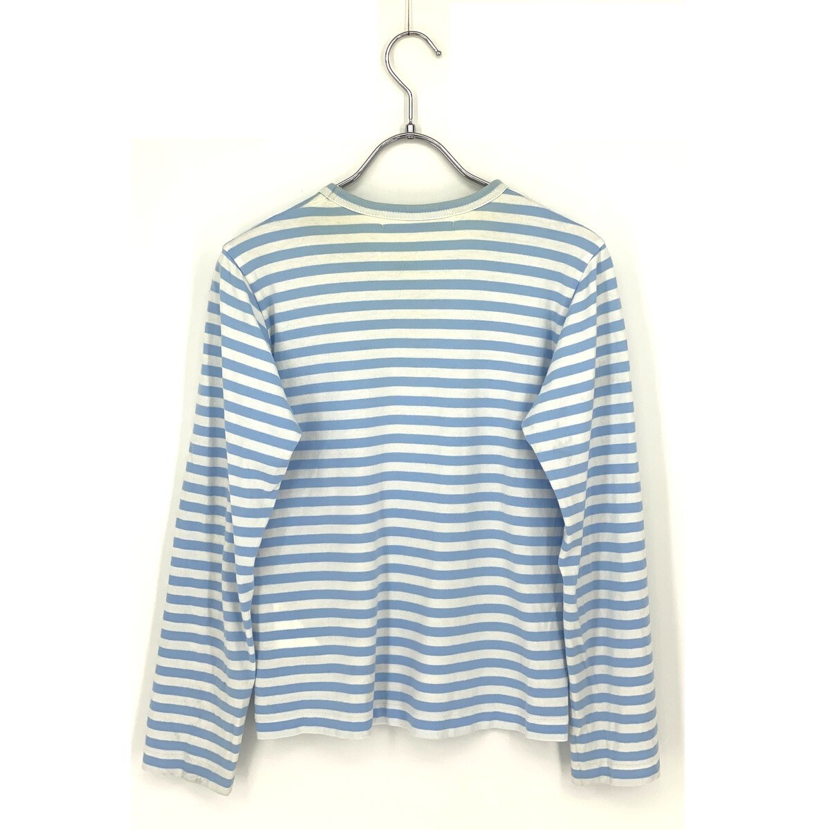B0848/訳あり AD2020 PLAY COMME des GARCONS コットン ボーダー ハート ワッペン 長袖 Tシャツ カットソー S 白 水色 レディース