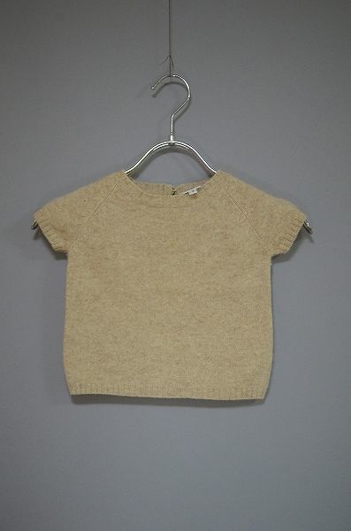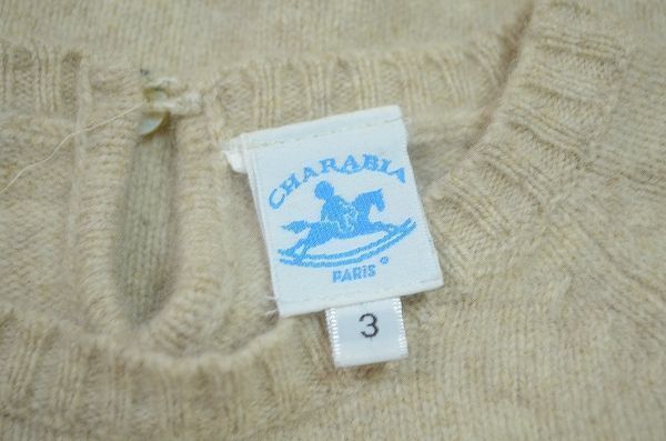 A393/定番 美品 春夏 CHARABIA シャラビア ウール 無地 丸首 ニット 半袖 セーター 3 ベージュ/キッズ カーディガン