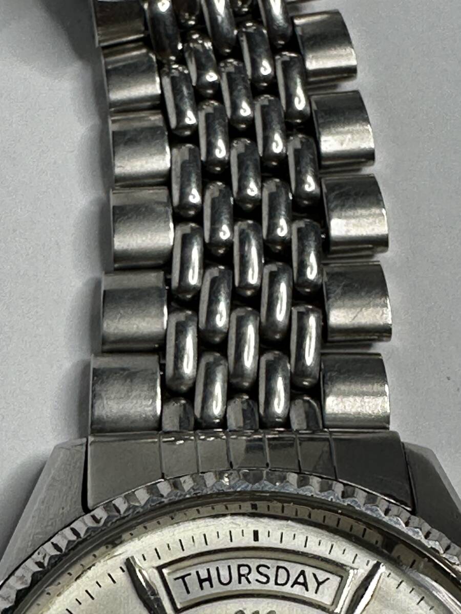 文字盤はシルバーですがシャンパン色にエージングが始まっていて趣のある表情です。