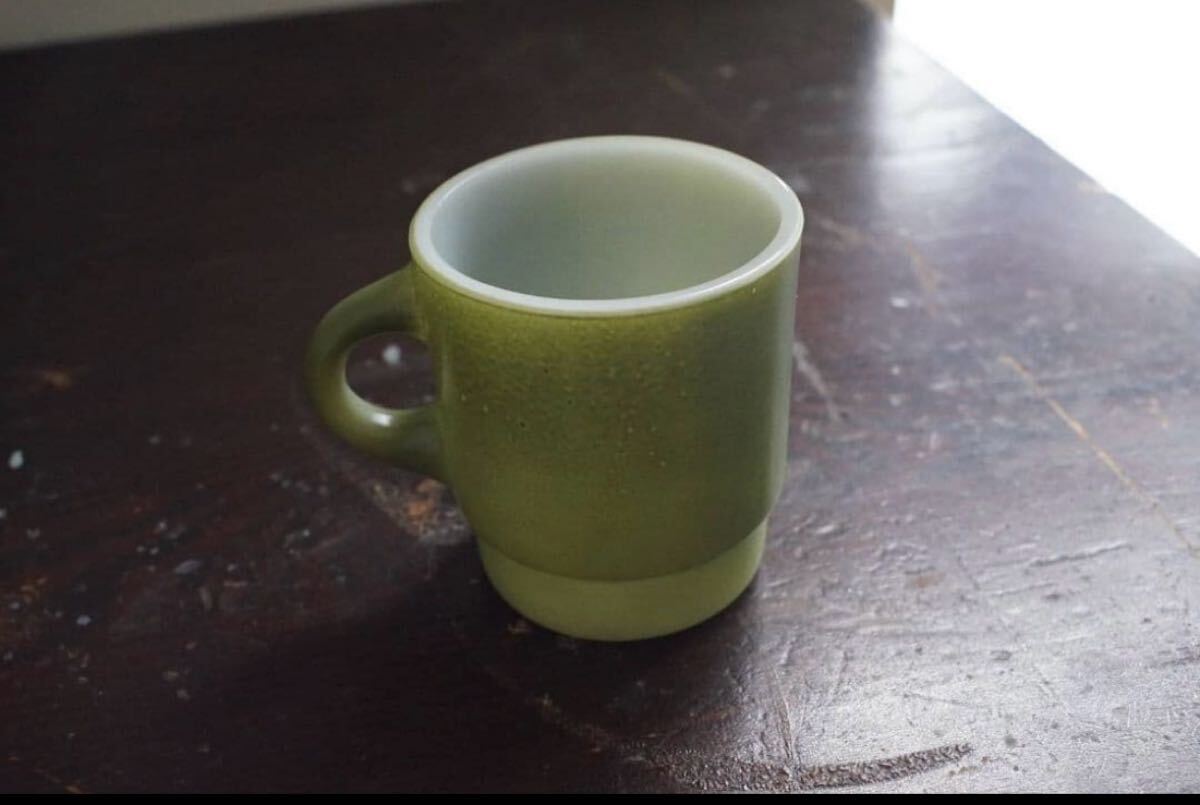 GREEN Made in USA ヴィンテージ アンカーホッキング社製ファイヤーキング スタッキング マググリーン アメリカ製