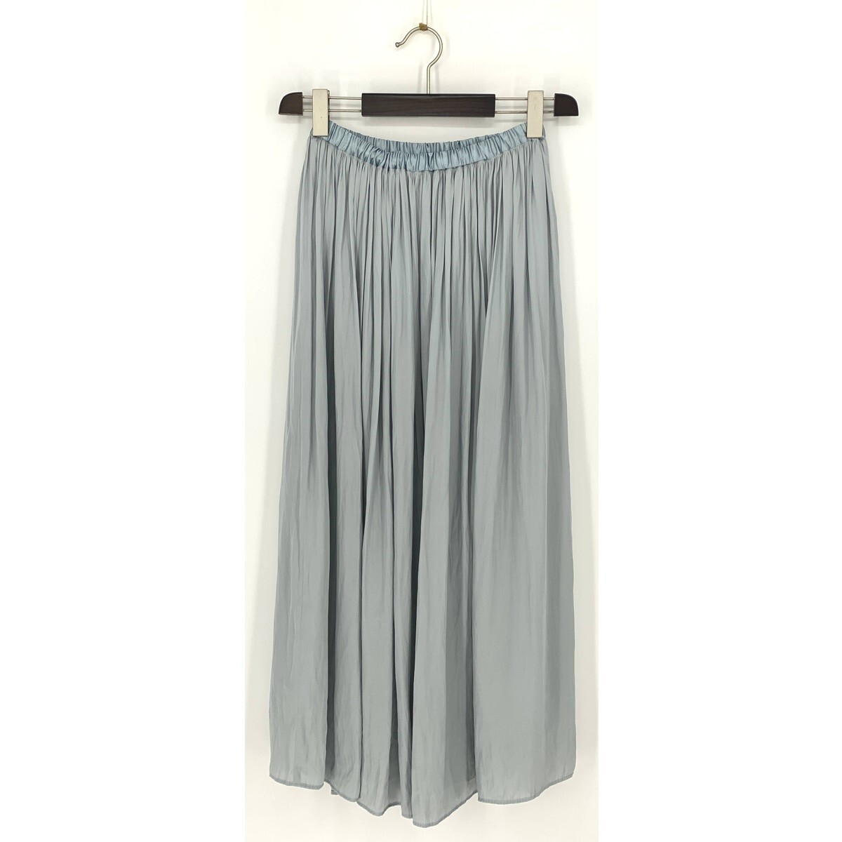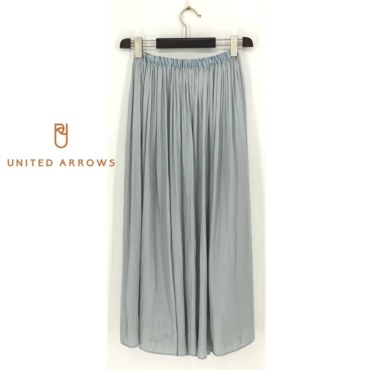 B0466/極美品 UNITED ARROWS ユナイテッドアローズ サテン 光沢 ウエストゴム ギャザー フレア ロング マキシ丈 スカートF 水色 レディース