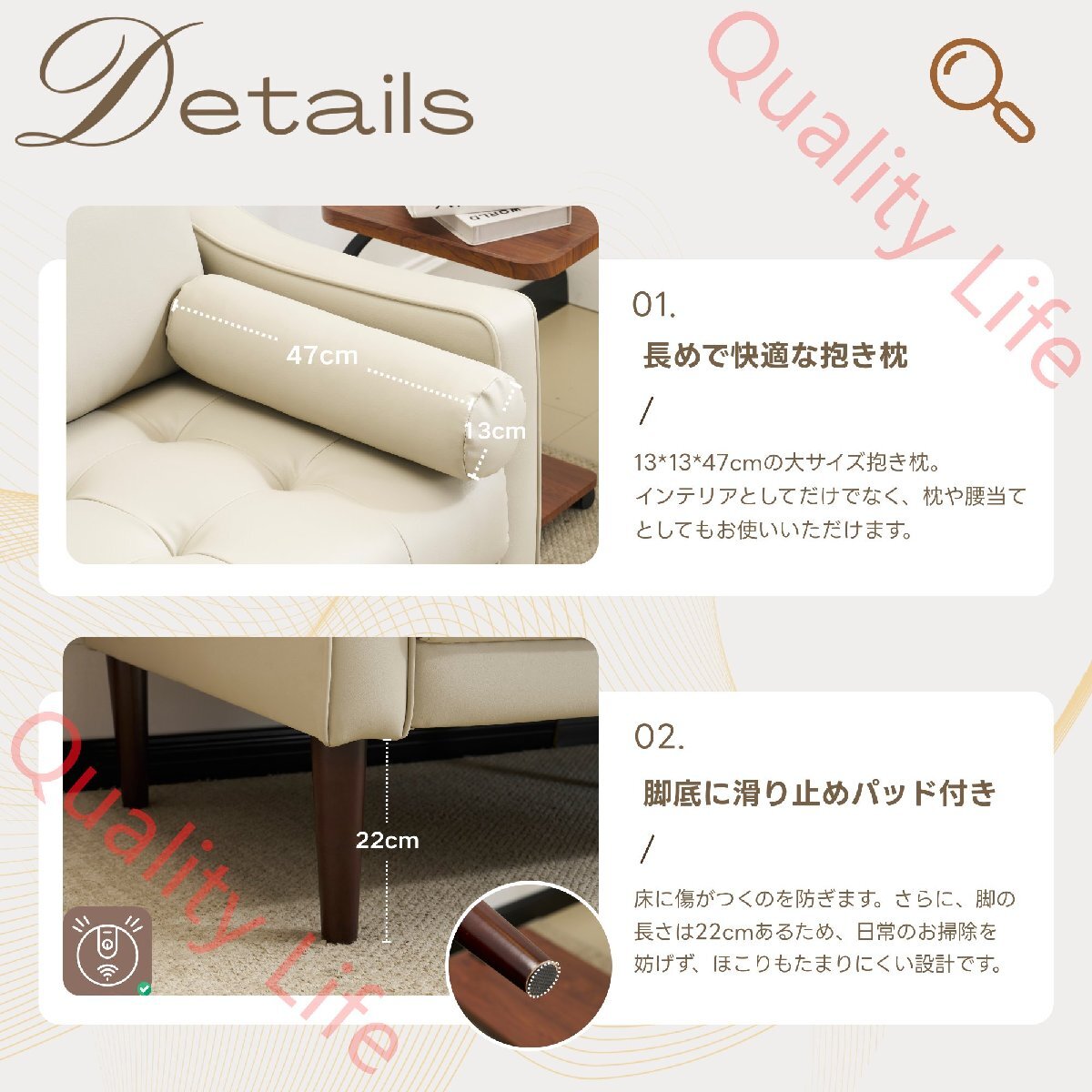 • ★【便利な円柱型クッション付き】付属のボルスタークッション2個は、枕代わりに使ったり、インテリアとして飾ったりと多用途。ソファ全体のアクセントにもなります。