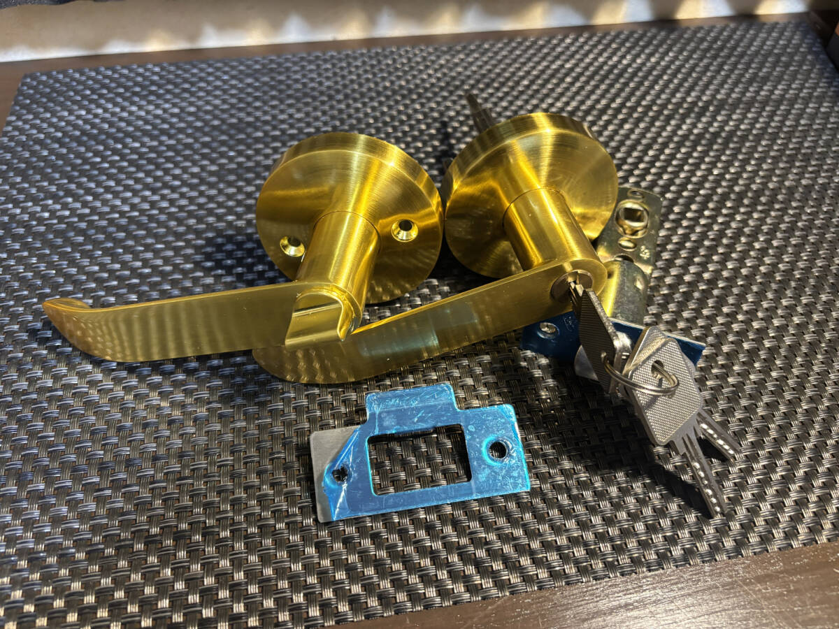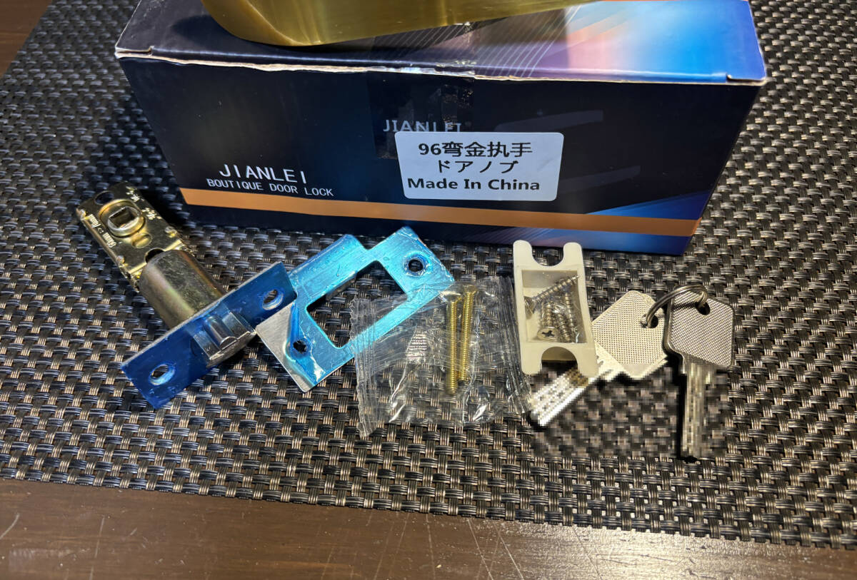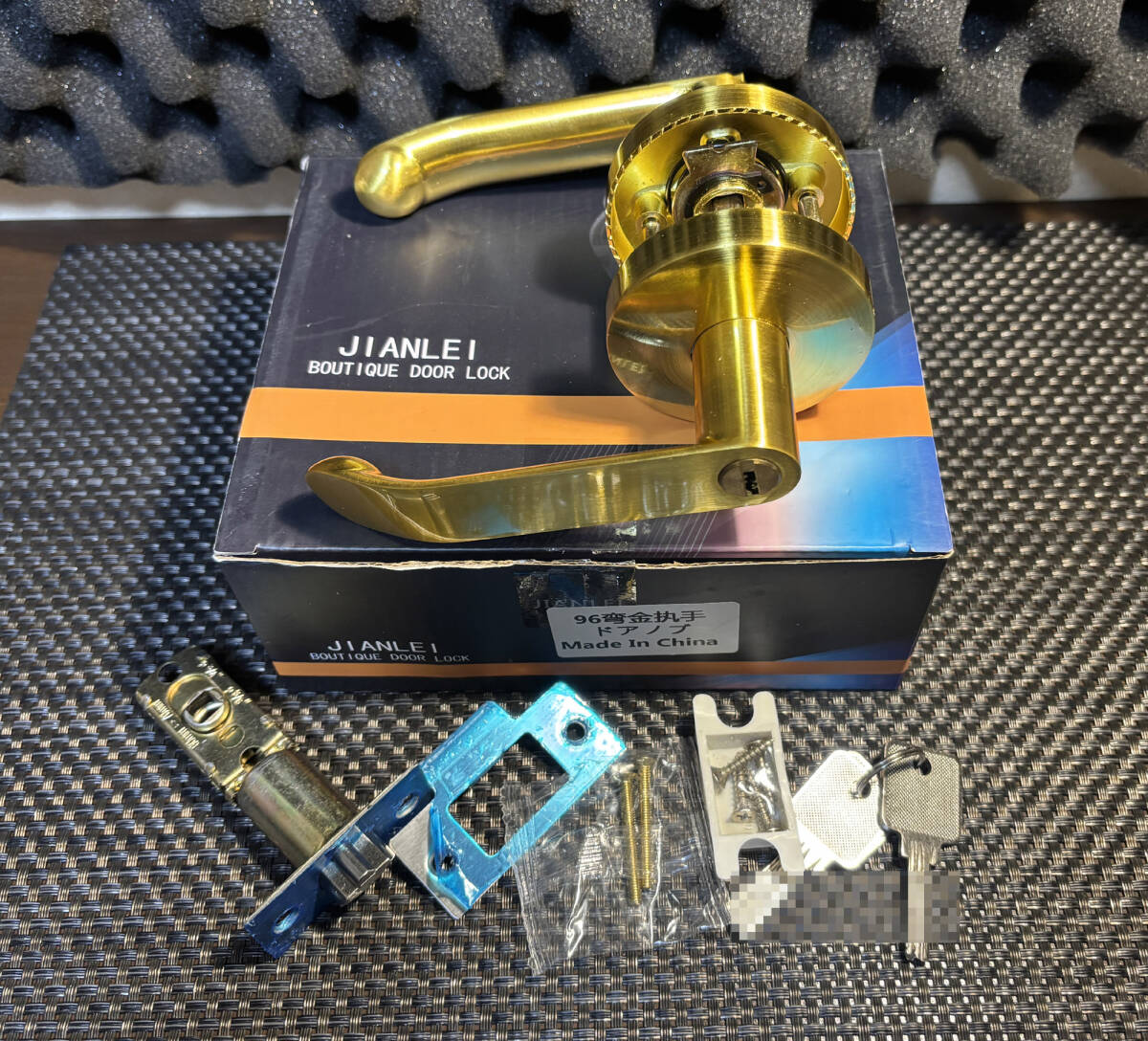 ドアノブ 鍵付き 室内 浴室 レバーハンドル アルミニウム合金の主体 ET001-SBゴールド MDM(3鍵付き-金)