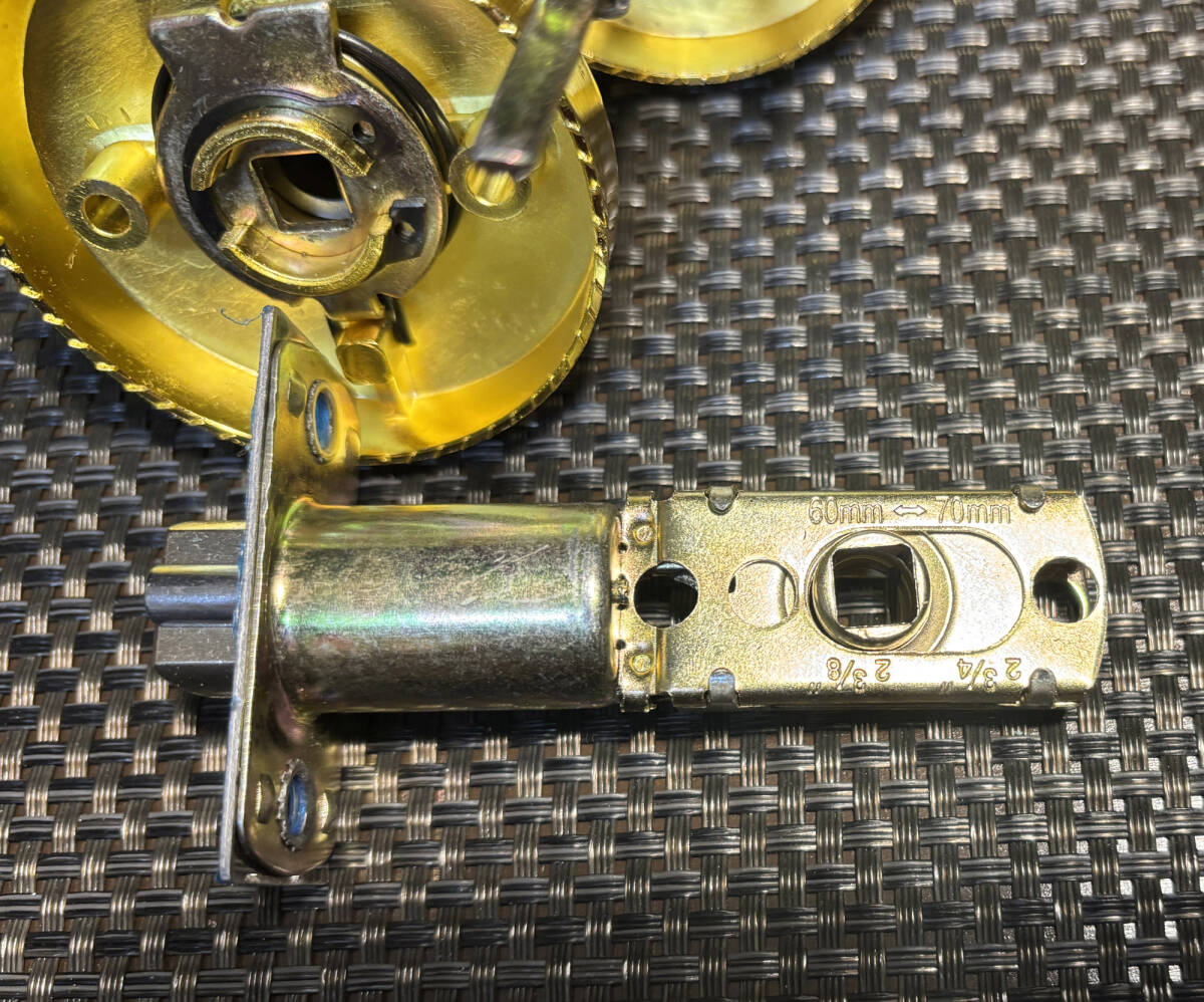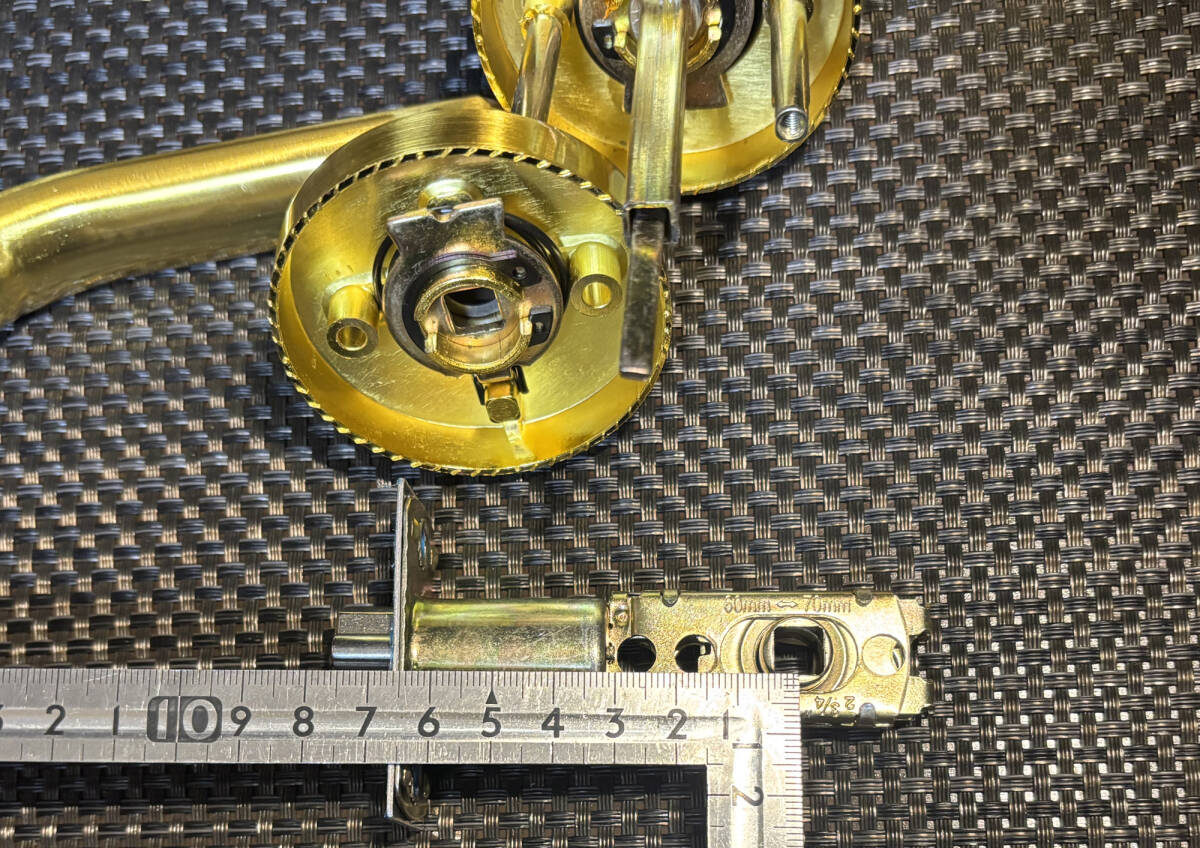 1[ET001-SBゴールド] 45°ドアを開けレバーハンドル錠 アルミニウム合金の主体 適用扉厚:30-50mm ラッチは60mmあるいは70mmに調整可能 フェイスプレート直径:65mm; ハンドルサイズ: 120 mm