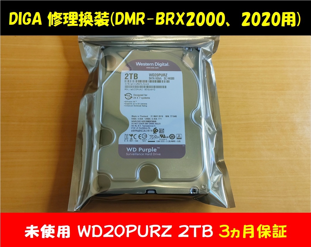 ディーガ BRX2000、BRX2020用に設定された未使用WD20PURZ(2TB) 動作品になります。