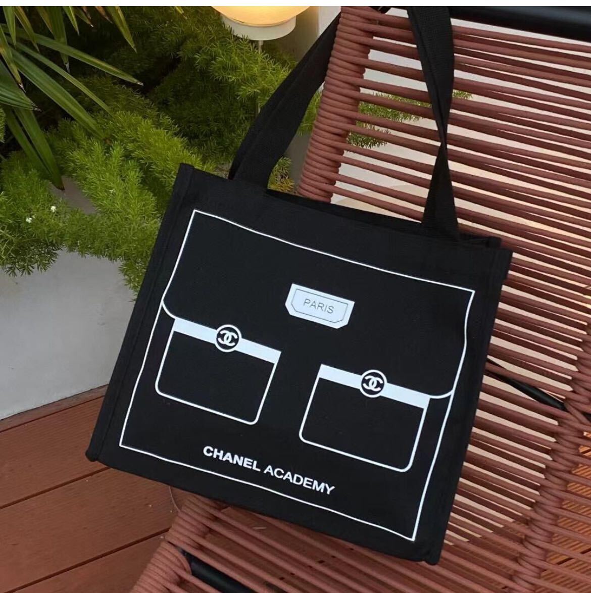 送料無料 帆布 シャネル 正規ノベルティ 非売品 CHANEL ACADEMYノベルティー トートバッグ ブランド レディース 黒