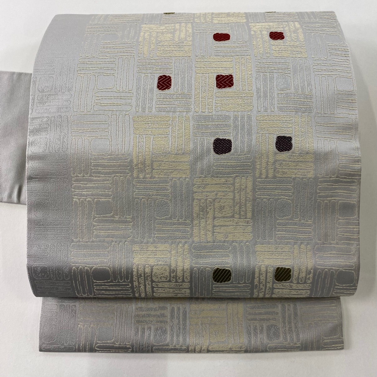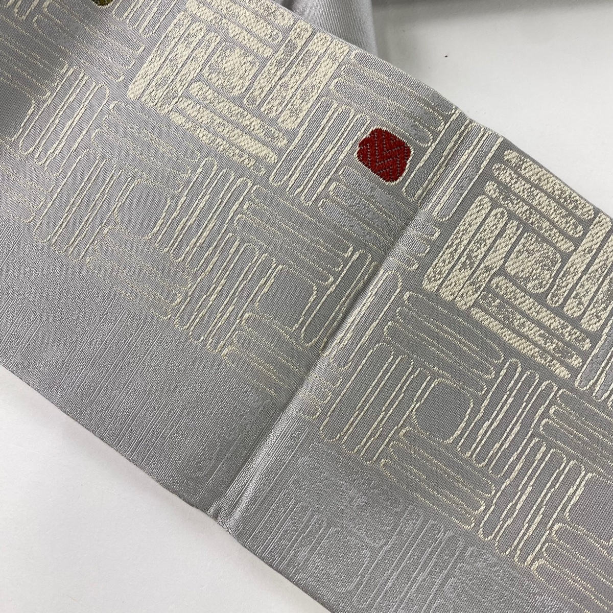 | 名古屋帯 美品 秀品 変わり市松 幾何学 灰色 正絹 【中古】 |