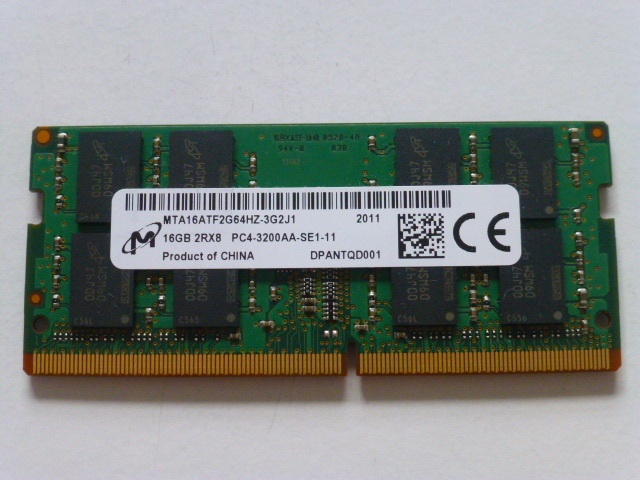 メモリ ノートパソコン用 Micron 1.20V DDR4-3200 PC4-25600 16GB 起動確認済みです
