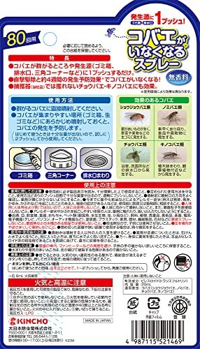 80回×1 KINCHO コバエがいなくなるスプレー 80回用 (駆除・発生予防 4週間) 20mL