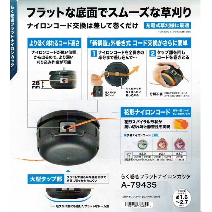 マキタ製のらく巻きフラットナイロンカッタのA-79435です。