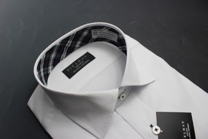送料185円【新品】BIELMAN(山喜) ワイドカラー/ワイシャツ長袖  標準体 形態安定 4L(47-86)  白ドビー/綾織柄 UND105/001