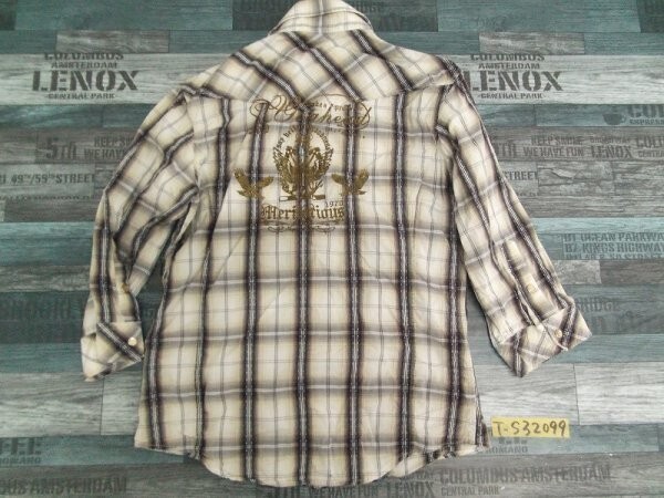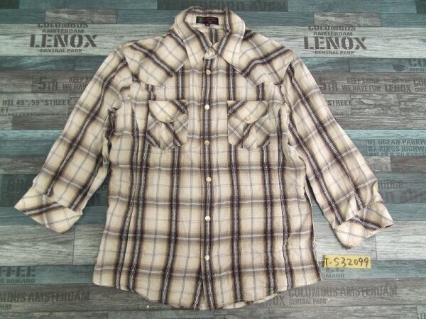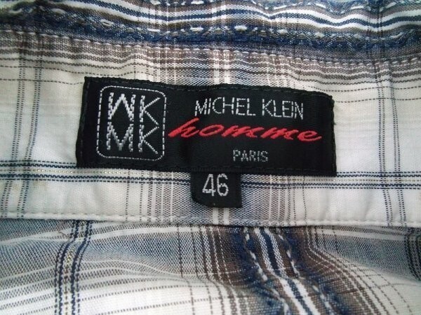 MICHEL KLEIN homme ミッシェルクラン メンズ チェック柄 七分袖シャツ スナップボタン 46 ベージュ紺 です。