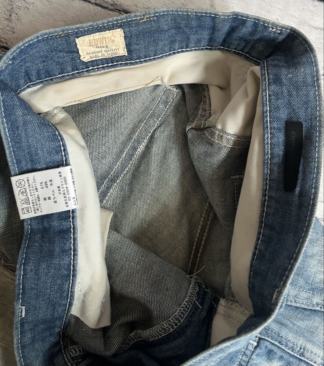 | EDWIN エドウィン503麻素材レギュラーストレートジーンズ32インチ中古(管NO1862) | |||