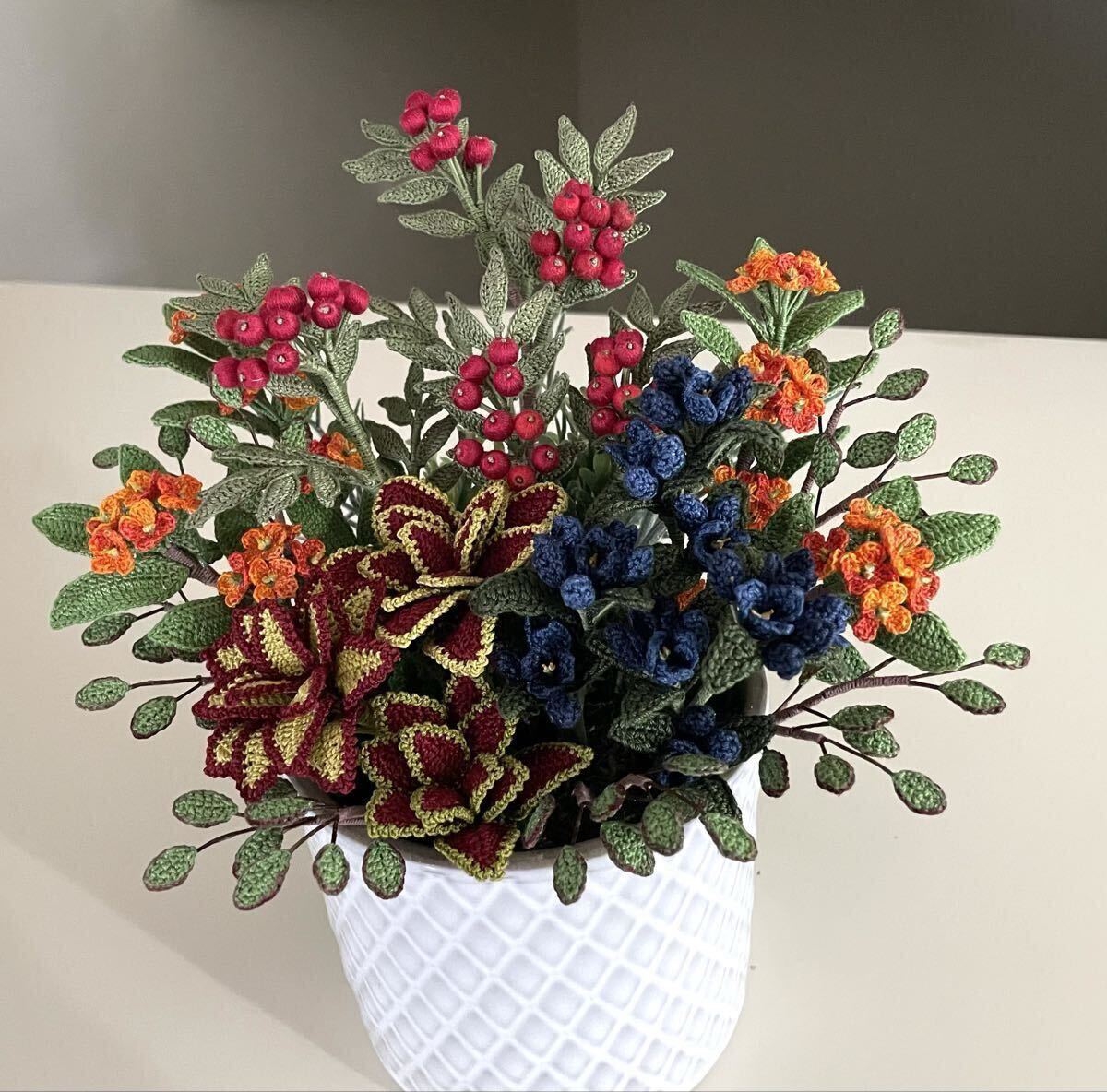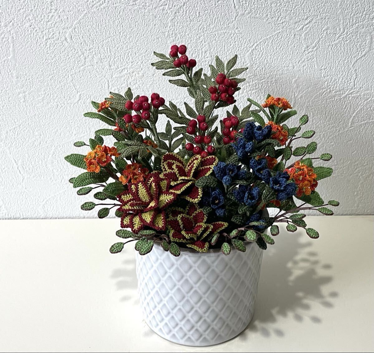 こちらはレース糸で編んだお花のアレンジメントです。