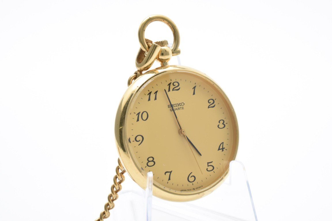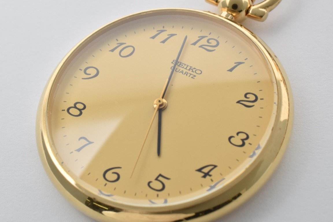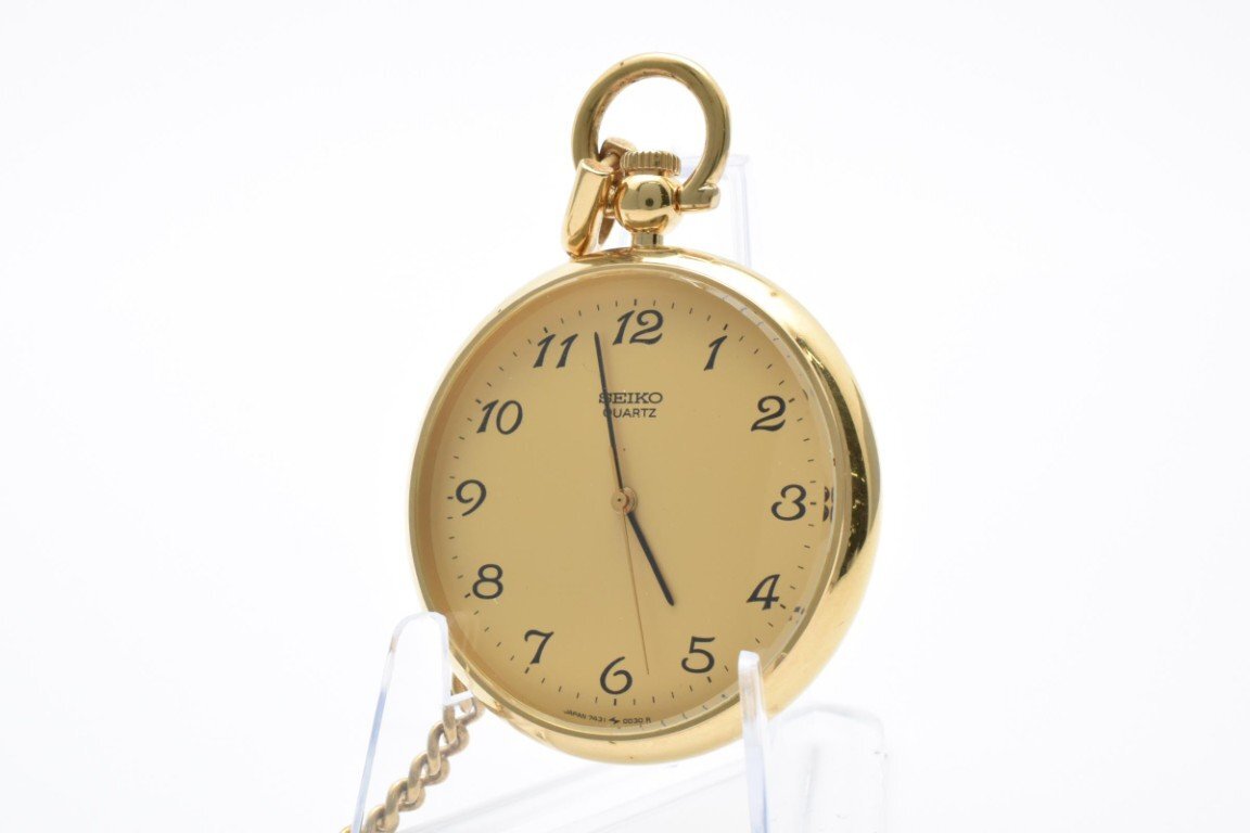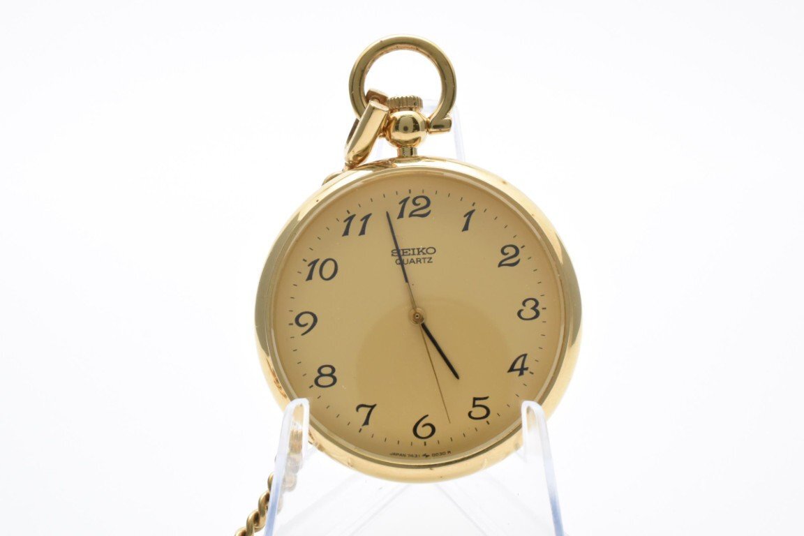 SEIKO セイコー 懐中時計 ゴールド文字盤 ゴールド アンティーク チェーン付き 3針 クォーツ式 7431-0020