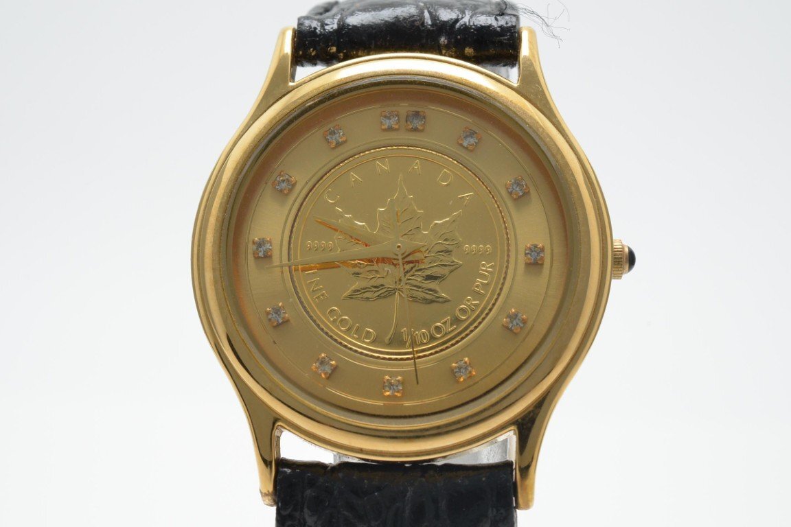 CANADA カナダ 腕時計 メンズ クォーツ式 ゴールド ゴールド文字盤 ラウンド 黒ベルト 3針 アンティーク 電池式