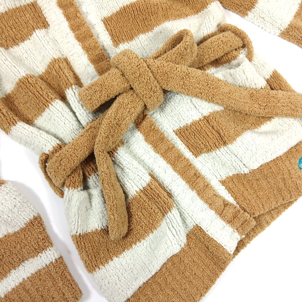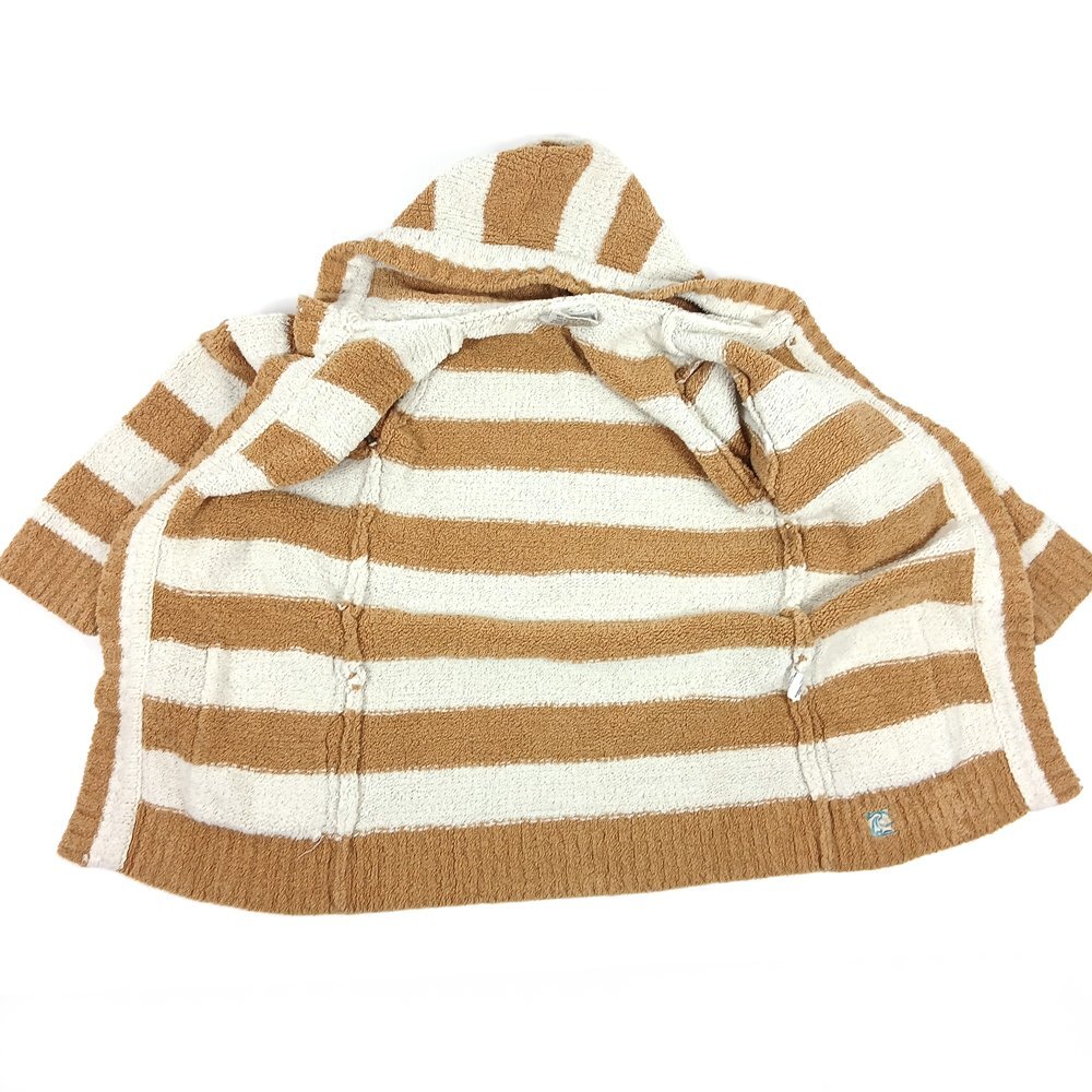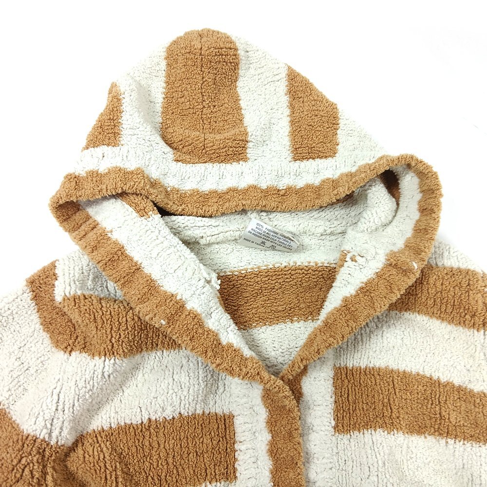 ・フード付きの茶色と白のストライプのカーディガン、柔らかいフリース素材で快適です◎