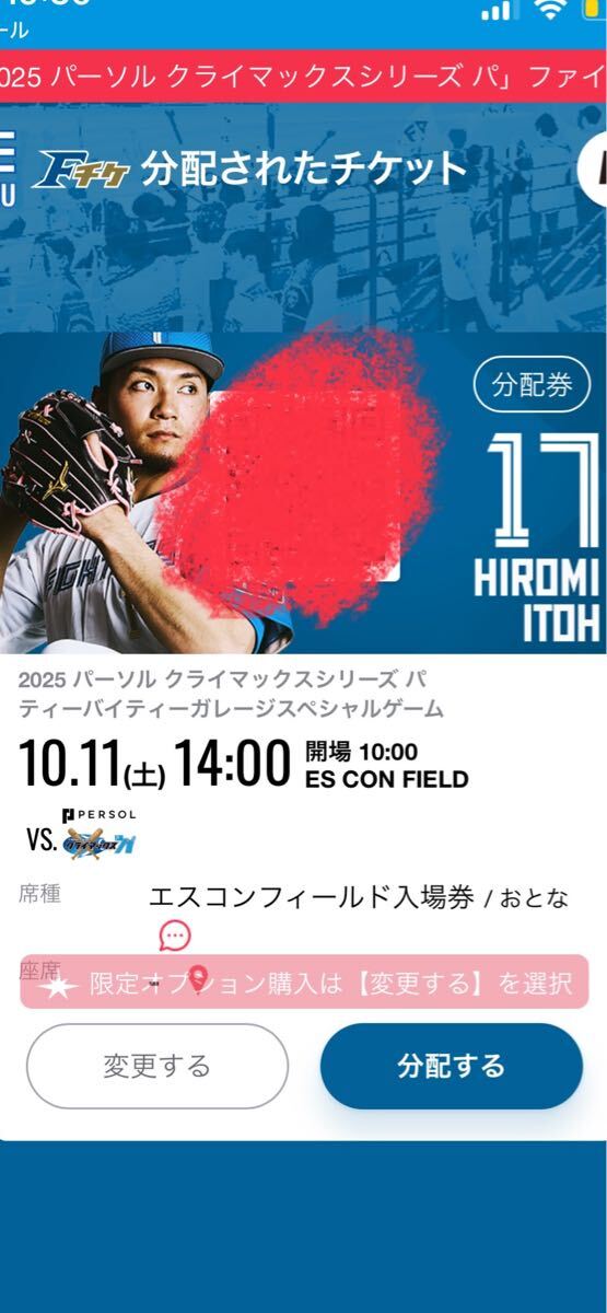 エスコンで行われるクライマックスシリーズの入場券2枚です。