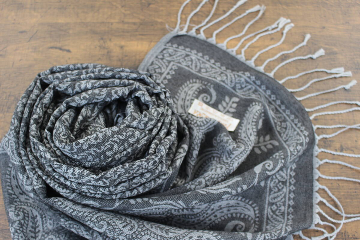 新品【パシュミナ Pashmina】ペイズリー×小花柄 チャコールグレー C.GRAY 大判 ストール カシミア100% Cashmere