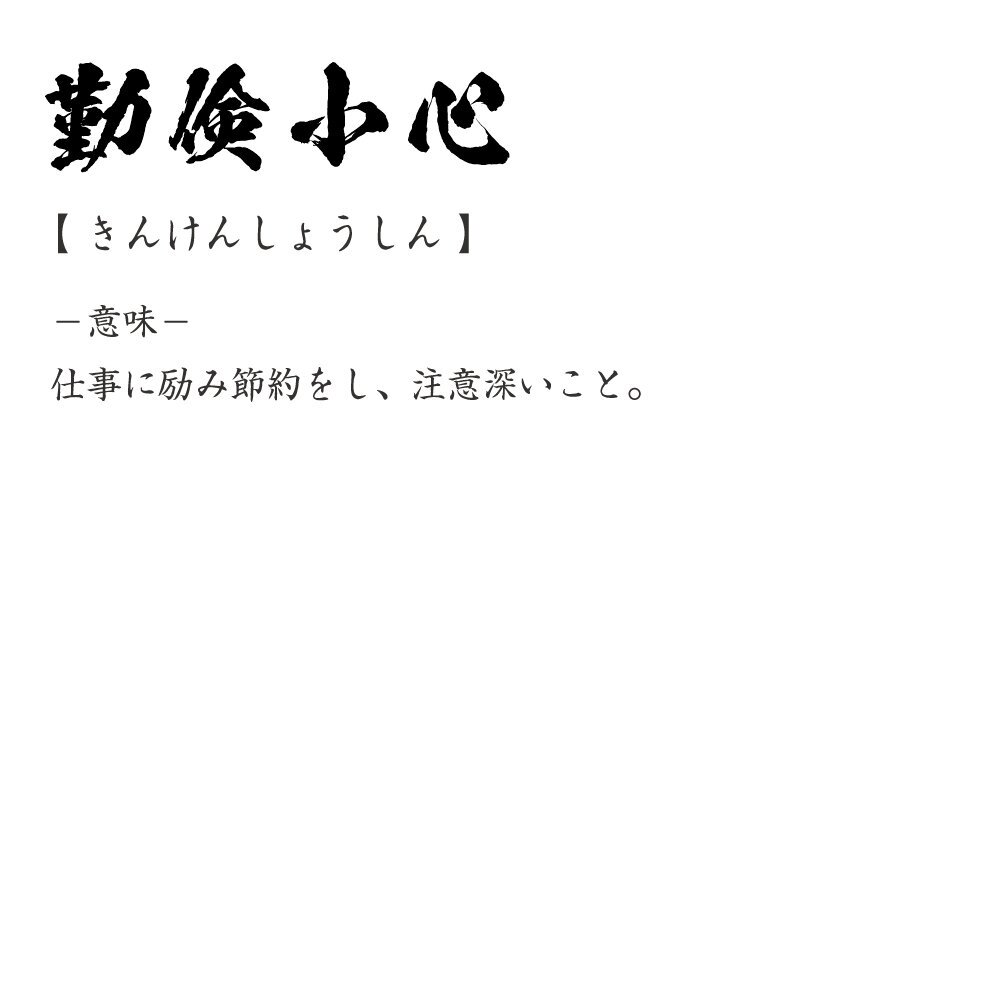 勤倹小心 (きんけんしょうしん) 書道家が書く プリント Tシャツ S M L XL XXL 120 130 140 150 G-S G-M G-L 【 四字熟語 】