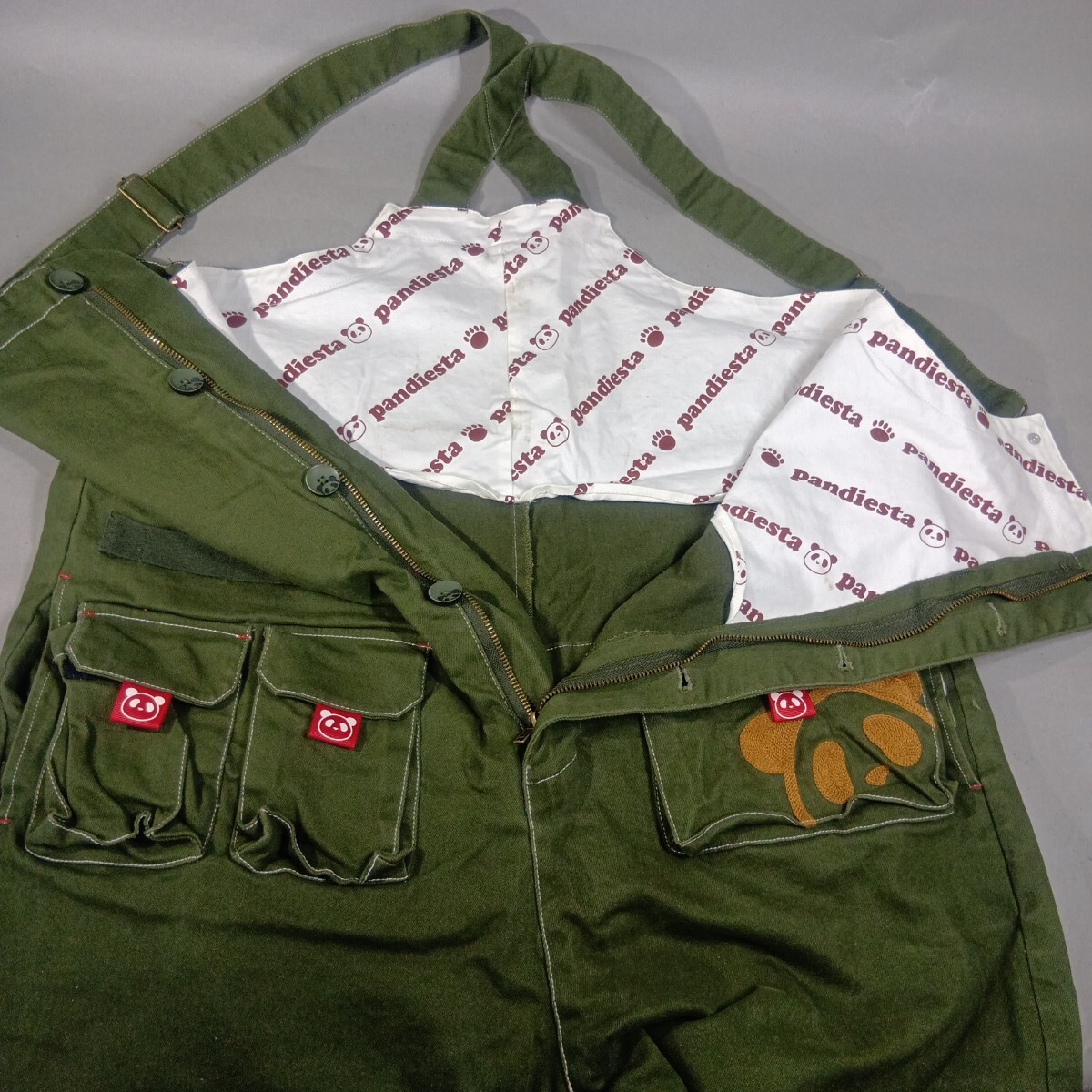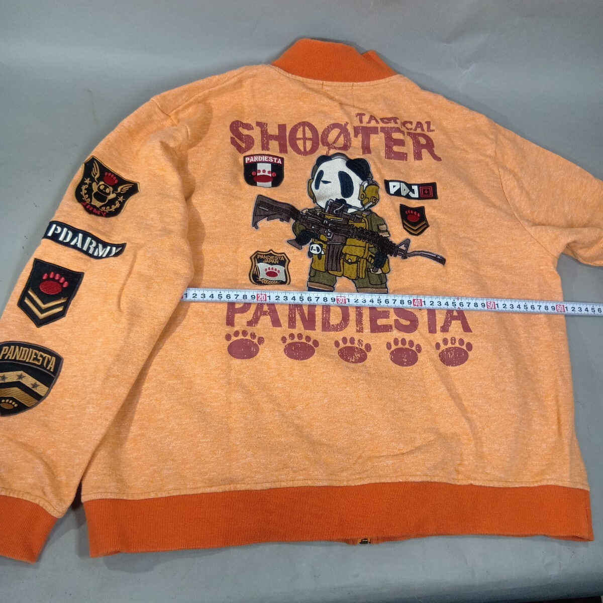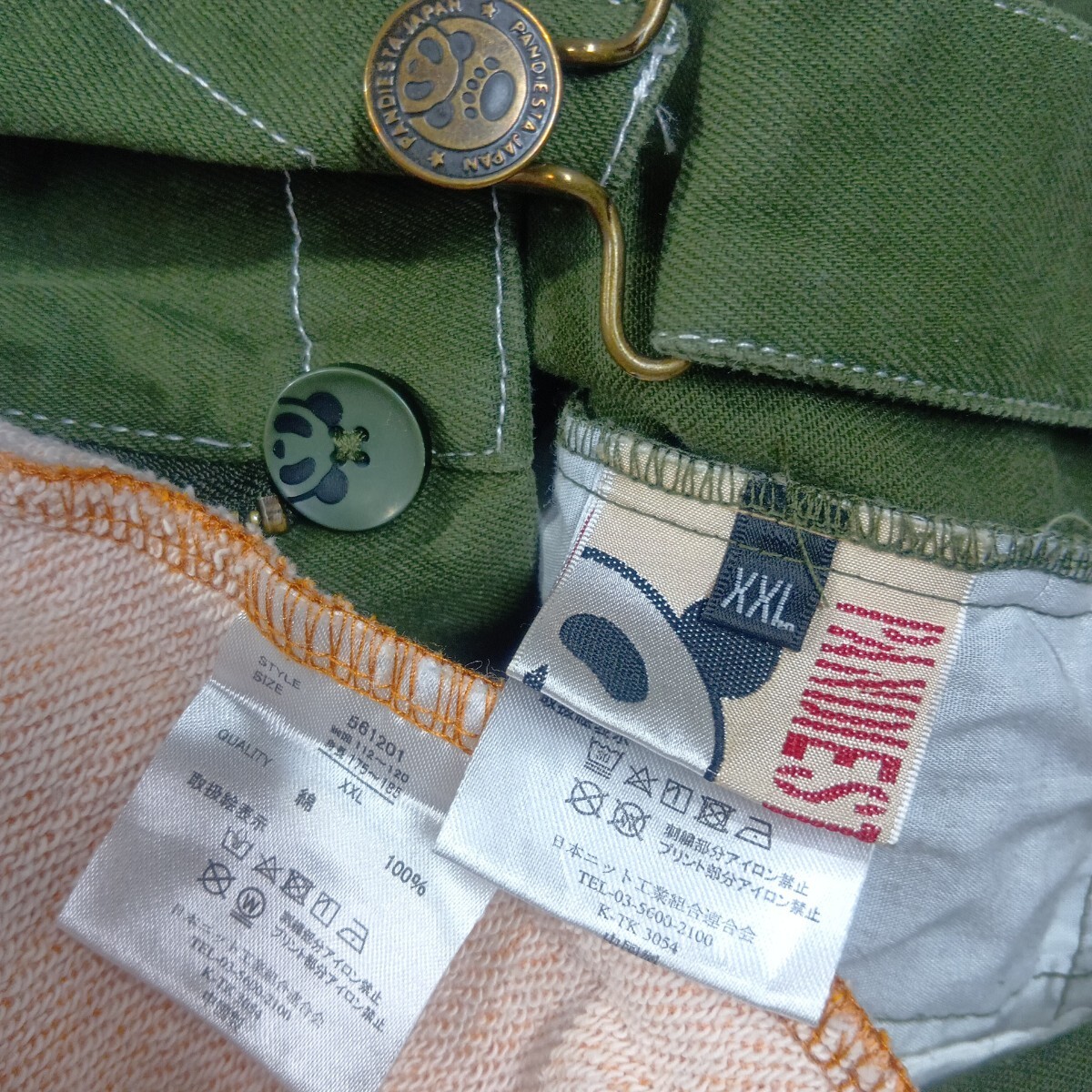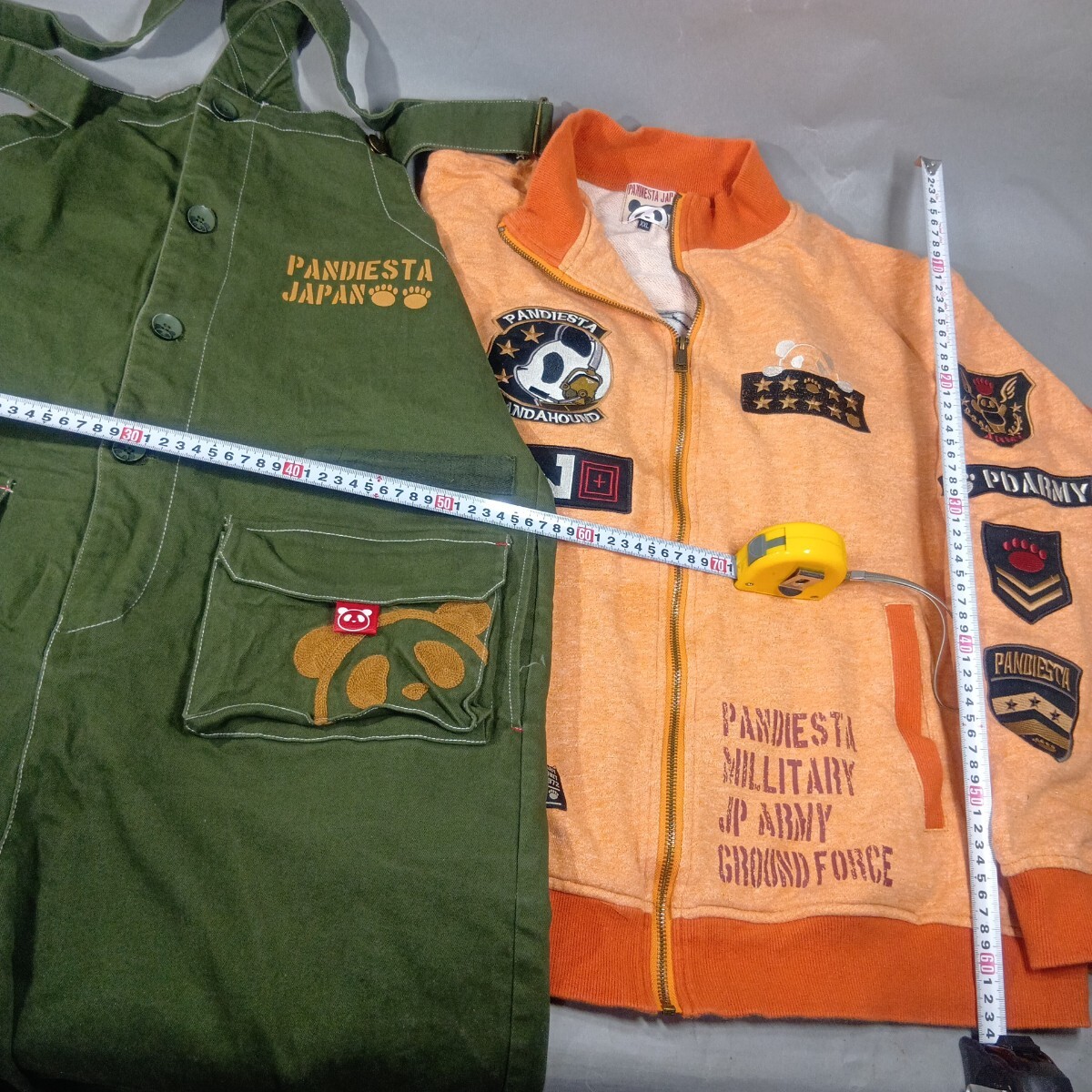 B2096 パンディエスタ ジップアップ トレーナー スウェット 橙 オーバーオール メンズ XXL カーキ パンダ まとめて2点 サロペット 古着
