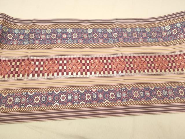 【正絹】 詳細に関しましては、画像をご確認ください。 本場筑前博多織は、 福岡県福岡市博多区やその周辺で生産される絹織物です。 仏具のひとつである独鈷、華皿を基にした幾何学模様が織られています。 江戸時代に筑前藩主だった黒田長政が幕府への献上品にしたことから、 博多献上、献上博多とも呼ばれます。 横畝が際立って見える経畝織りという織りになっています。 30〜60本の細い経糸を使うため、こしやはりがあり、 地合が硬く、光沢感があります。 きちんと締まり、くずれにくい、締めやすい帯といわれています。 大変上質な逸品になります。 お安く出品致しますので、是非この機会にいかがでしょうか? |