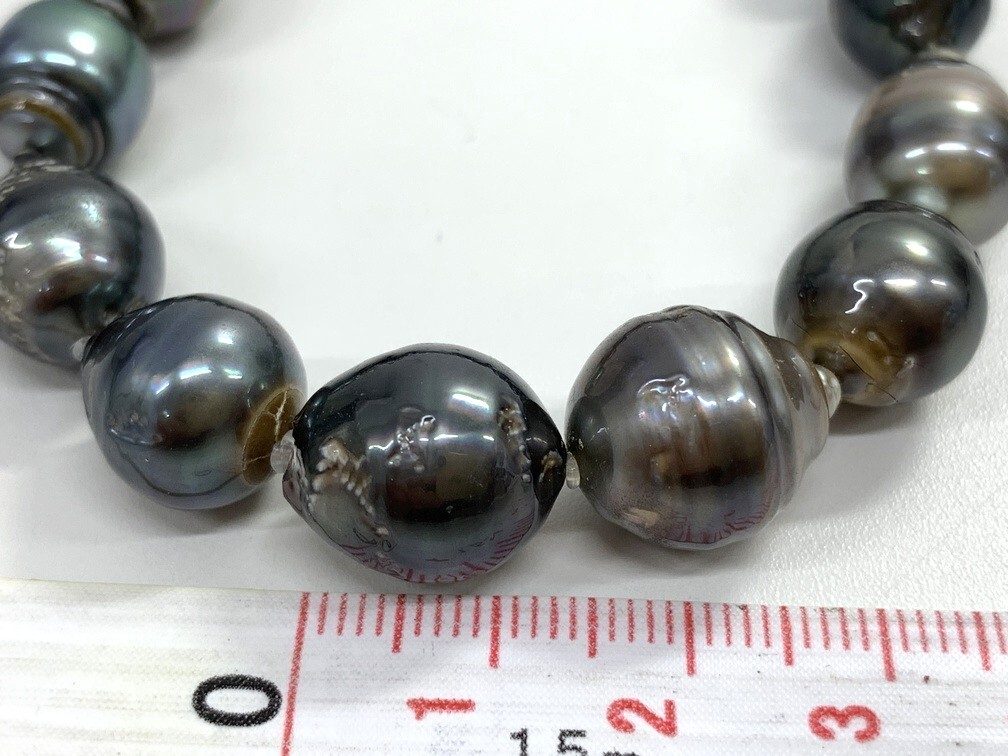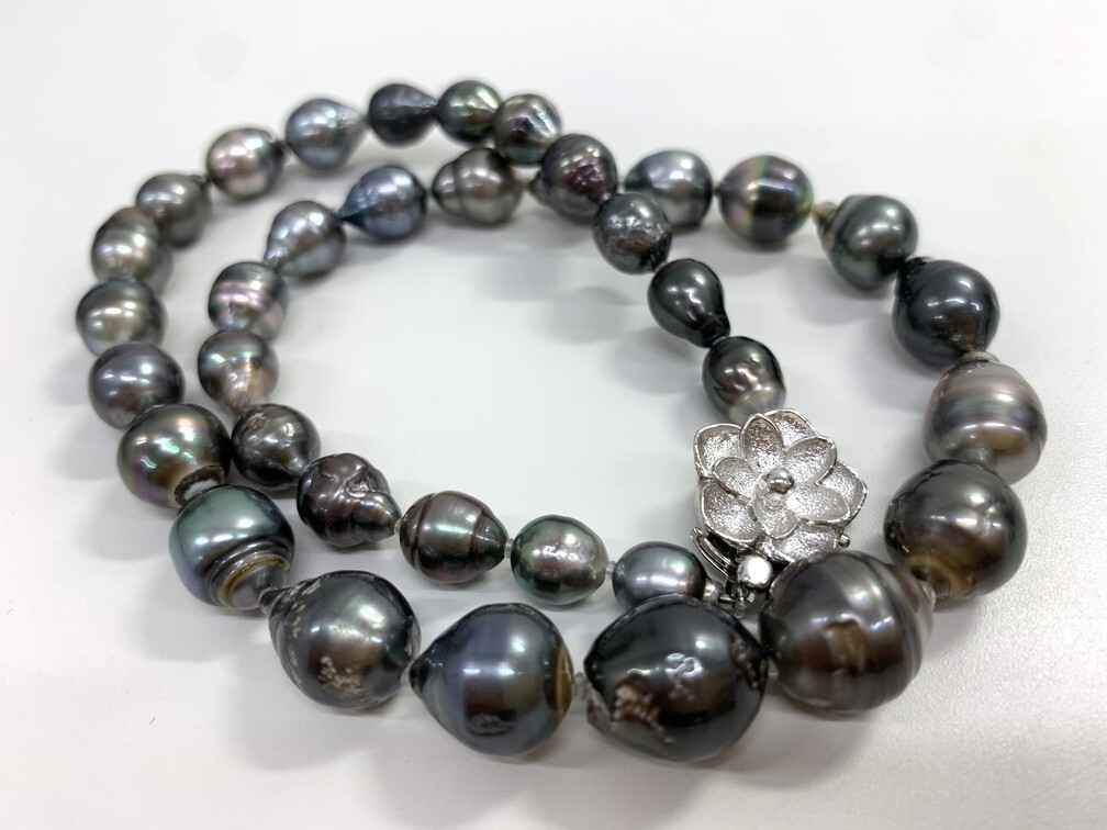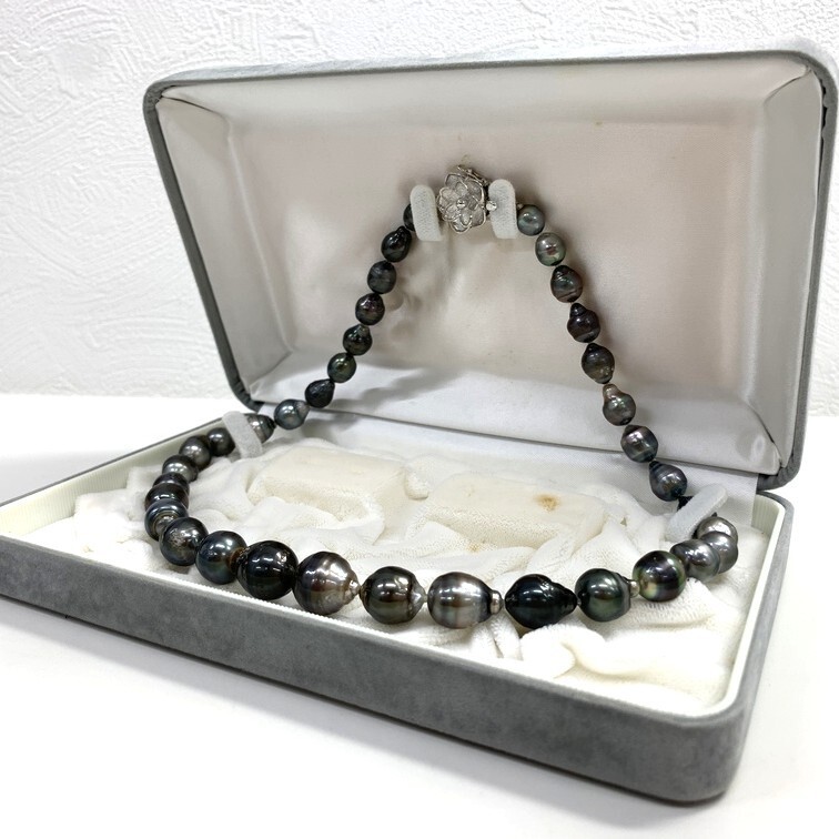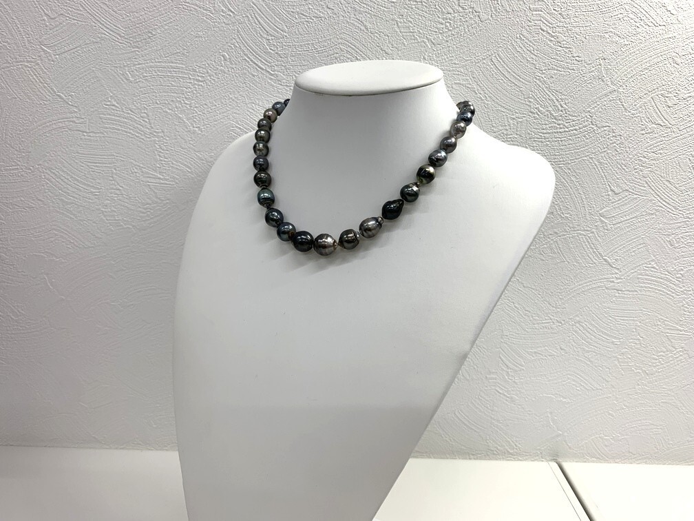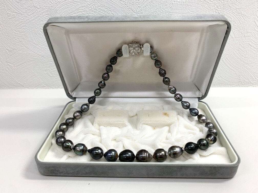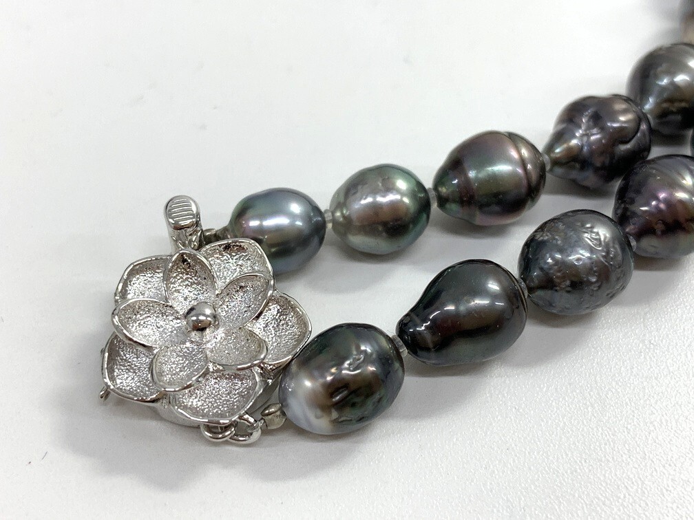 商品名 | SVバロックパールネックレス 【中古】 ブラック系 真珠 全長約44cm ケース付き アクセサリー ジュエリー シルバー GIN9-225 |