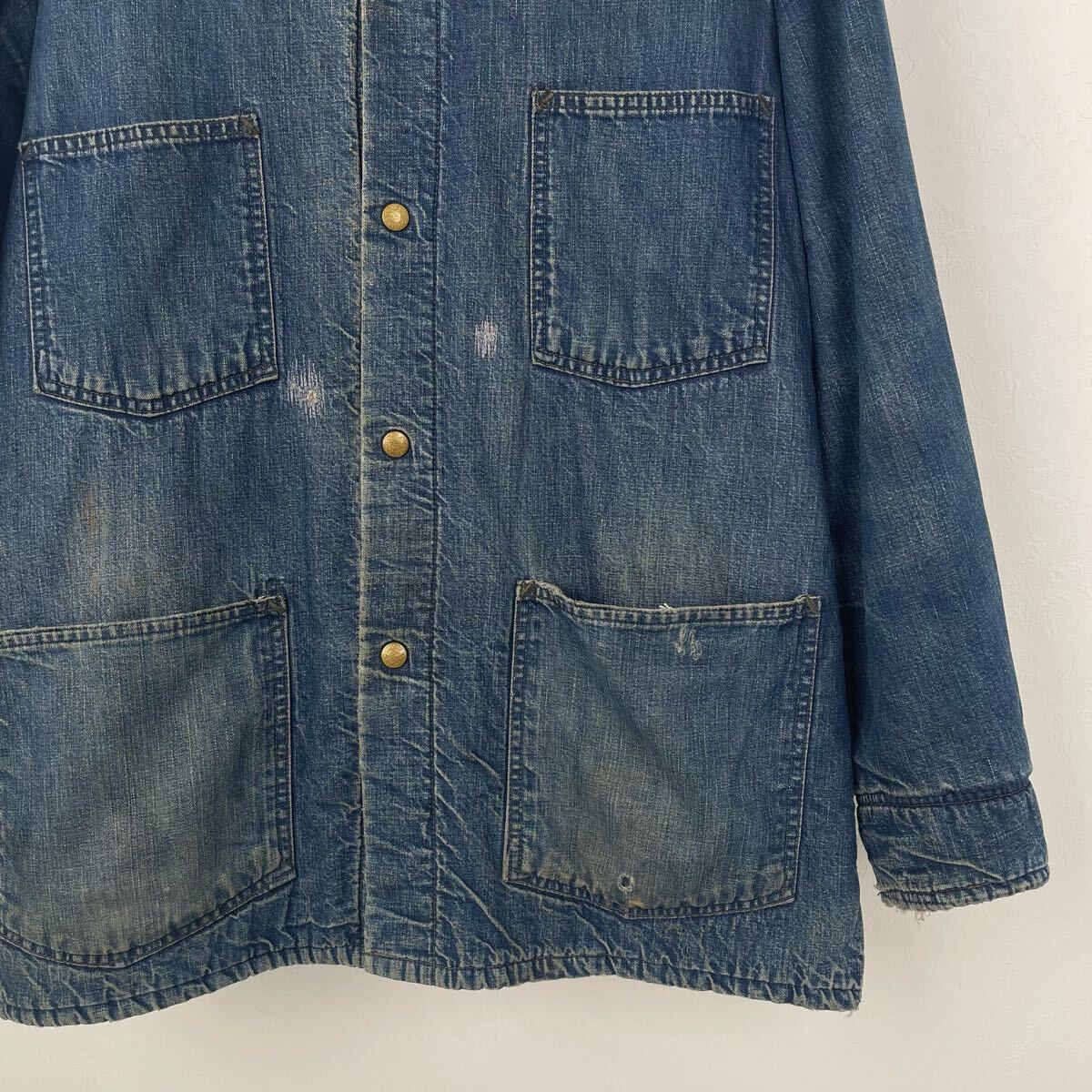 状態 : 中古 使用感あり リペアあり 前身頃の左下ポケットに小穴あり 裏地ブランケットに1箇所穴が空いています(写真) いい雰囲気です