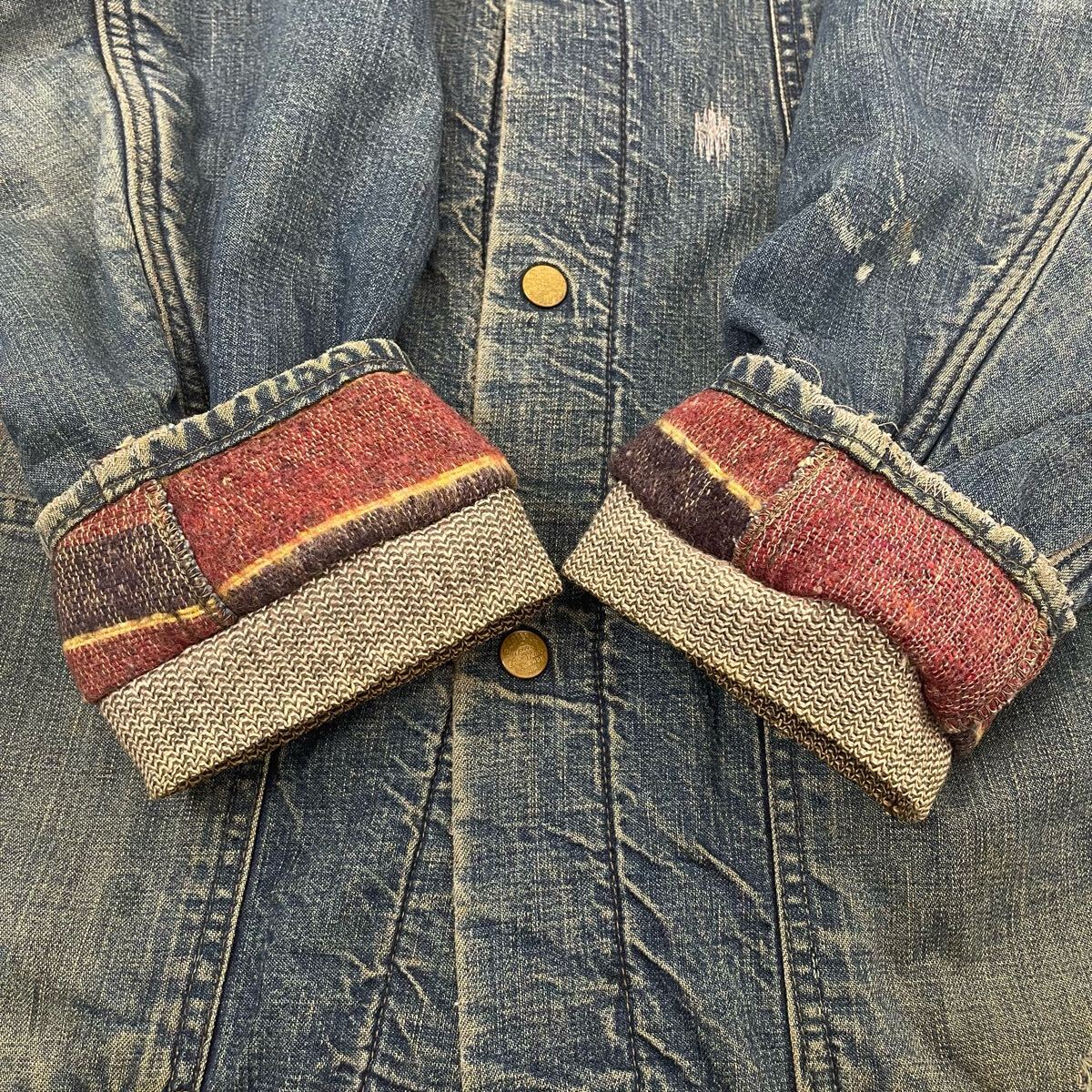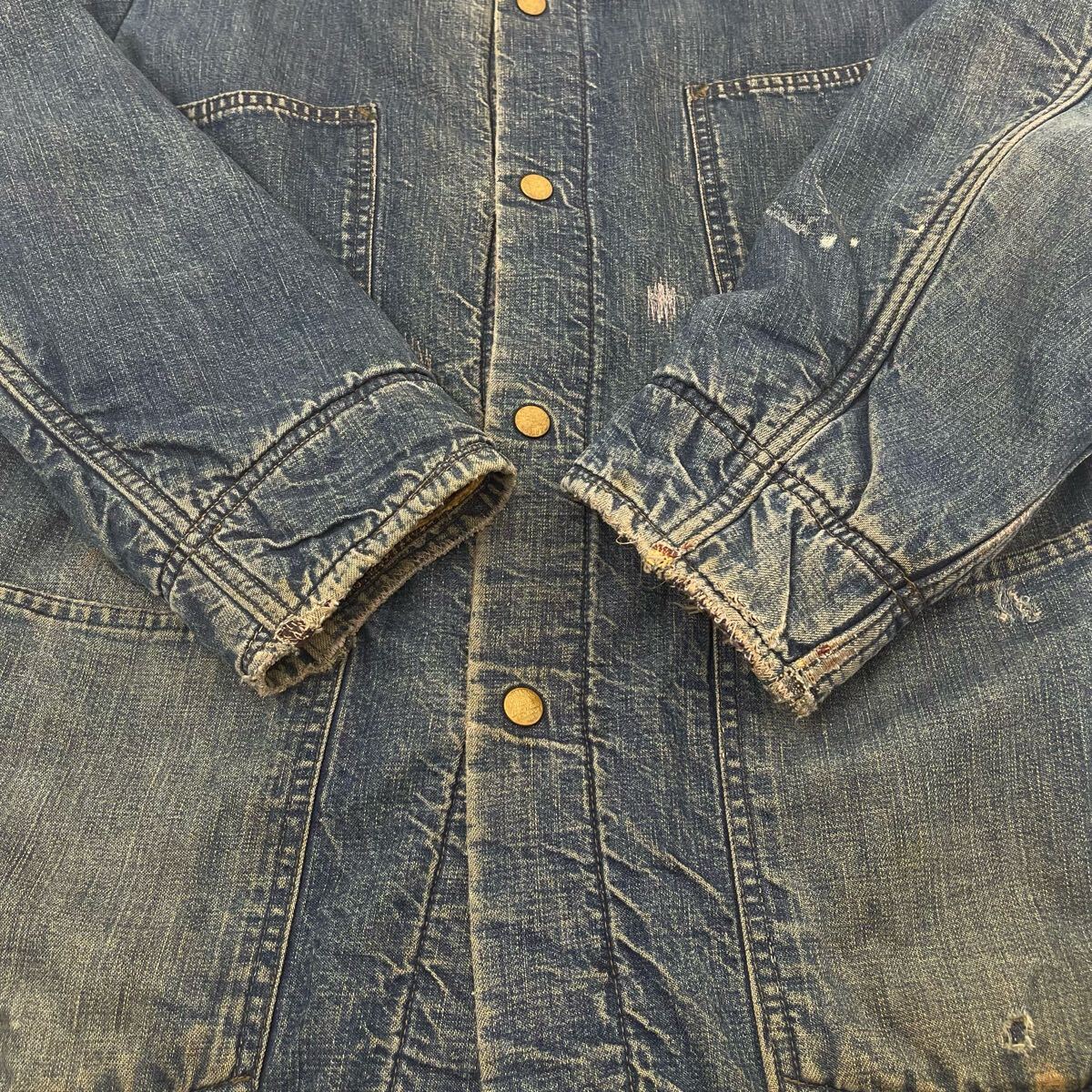 1950年代~1960年代頃に展開された通称”黄タグ”時代の一着で、表地には薄手のデニム生地、裏地にはブランケット生地が使用されています。いい塩梅な色落ち具合やアタリ、リペア跡など好きな人にはたまらない雰囲気抜群の仕上がりです。